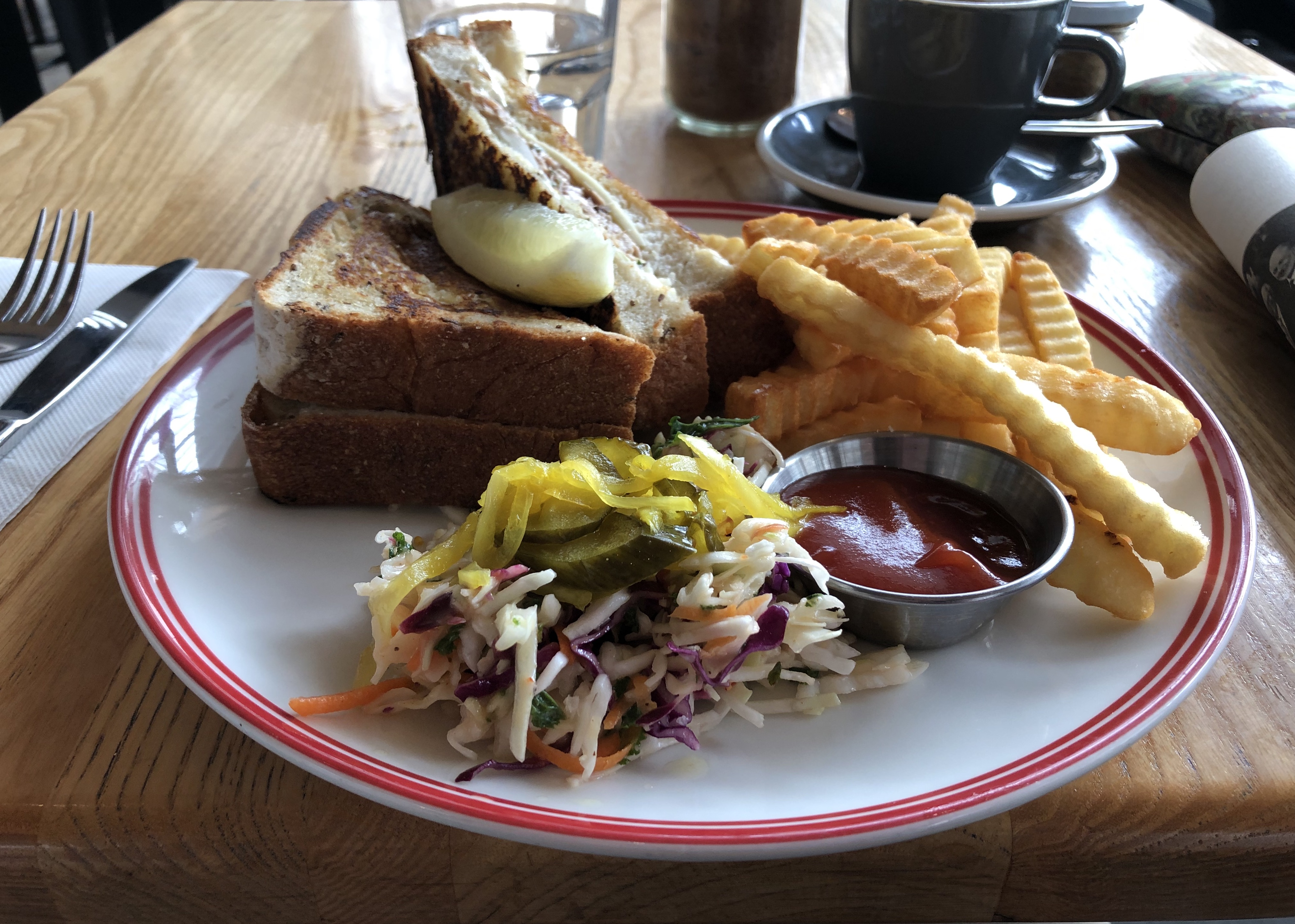 And so to food, and I had a hearty lunch of a tuna melt sandwich that came with “unexpected because I didn’t read the menu properly” chips (fries or whatever you call them where you live) before my vaccination on Wednesday. I also had to buy and enjoy some ajvar, that gorgeous Balkan spread made from red capsicum, after reading my new cookbook.