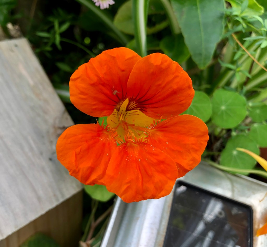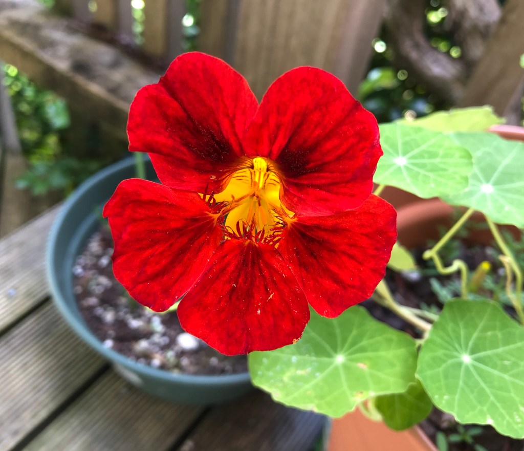 To start with this week, three different nasturtiums. I think the first one if my favourite with its pale yellow petals and contrasting dark red splashes. I am hoping for a few more over the next few weeks, and of course will start collecting the seeds for pickling.