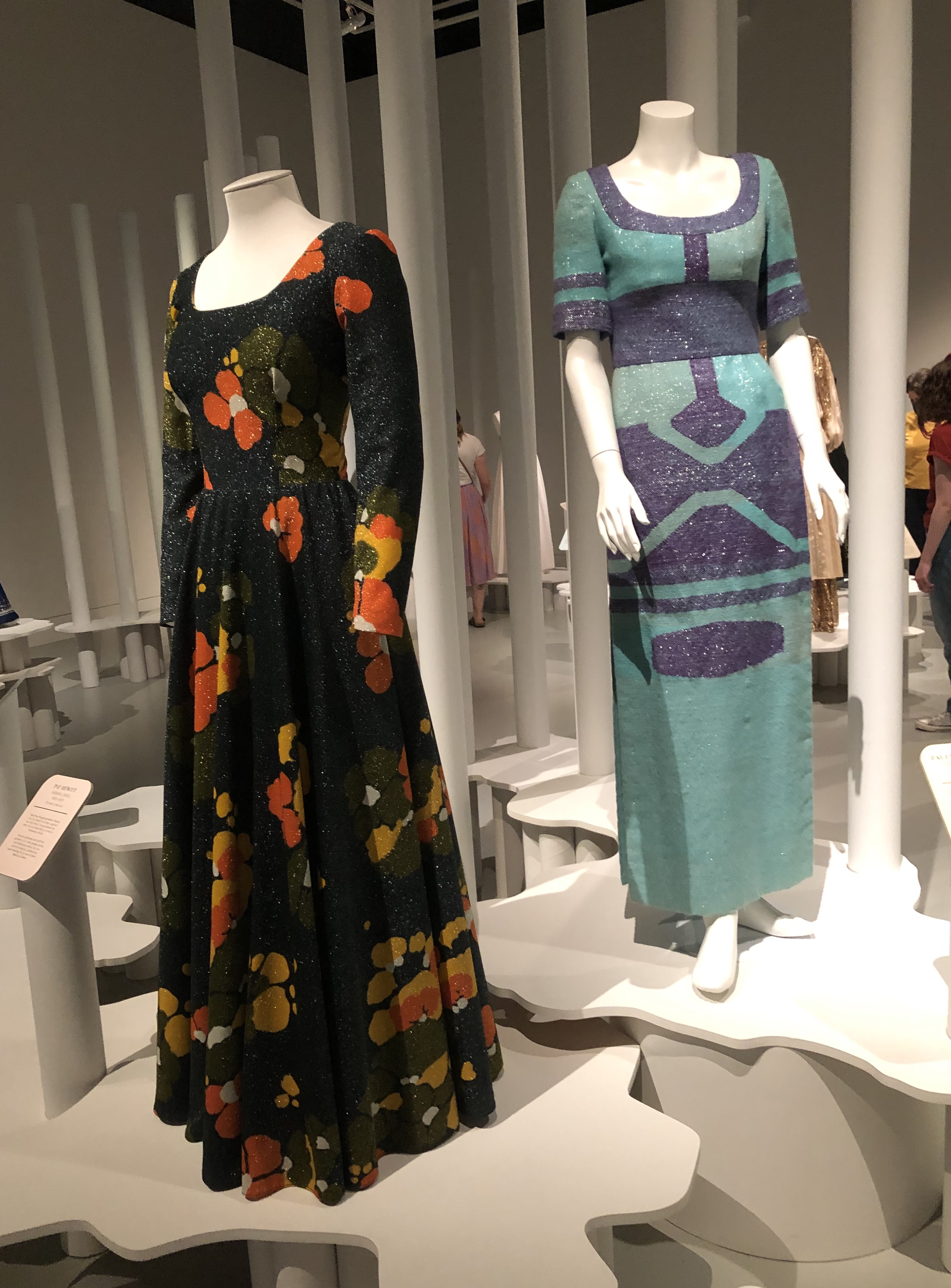On Sunday we went out to The Dowse Art Museum to see the exhibition of a selection of the Eden Hore collection of 1970s couture gowns. Hore was a farmer in Central Otago who collected around 200 garments, a few of which were on show at this lovely exhibition. The blue catsuit on the left below had legs 3 metres wide! My favourite though was the black and white one next to it. There were sequins, lurex, and garments made of the finest wool. Thanks to Su over at Zimmerbitch for telling me about this great little exhibition.