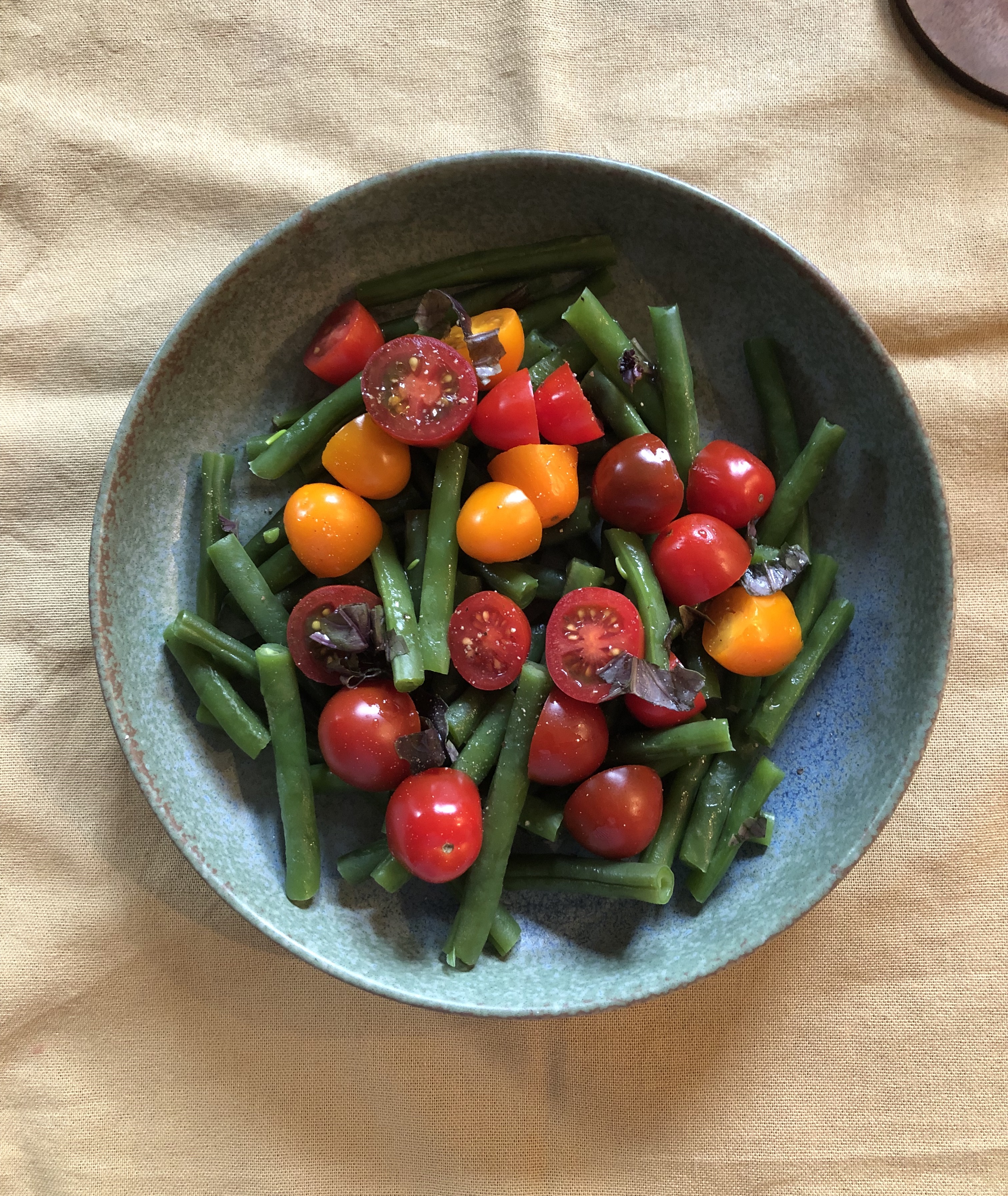 I wish we were having a lovely meal like that on a Sunday….. we have plenty of beans and tomatoes for the salad…the quiche topped with mozzarella looks very tasty!