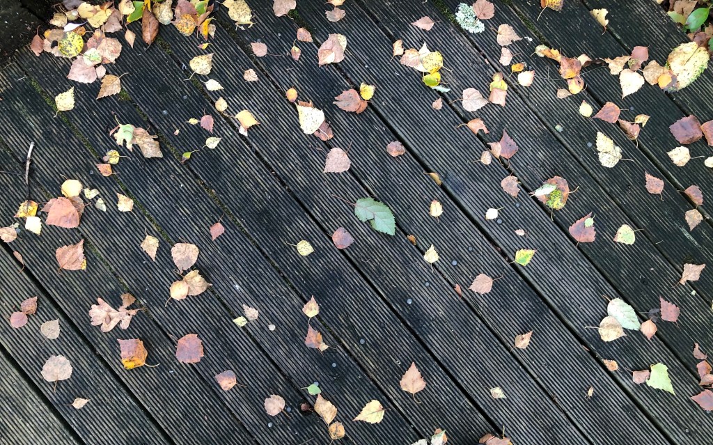 You can tell it is autumn part 3. I swept and tidy up all the decking on Tuesday, then we had quite a spectacular thunder storm, and this was the side of the house (that gets no light hence no pots, just an old beer crate that was saved for friends who then moved…) and the front of the house the next day.