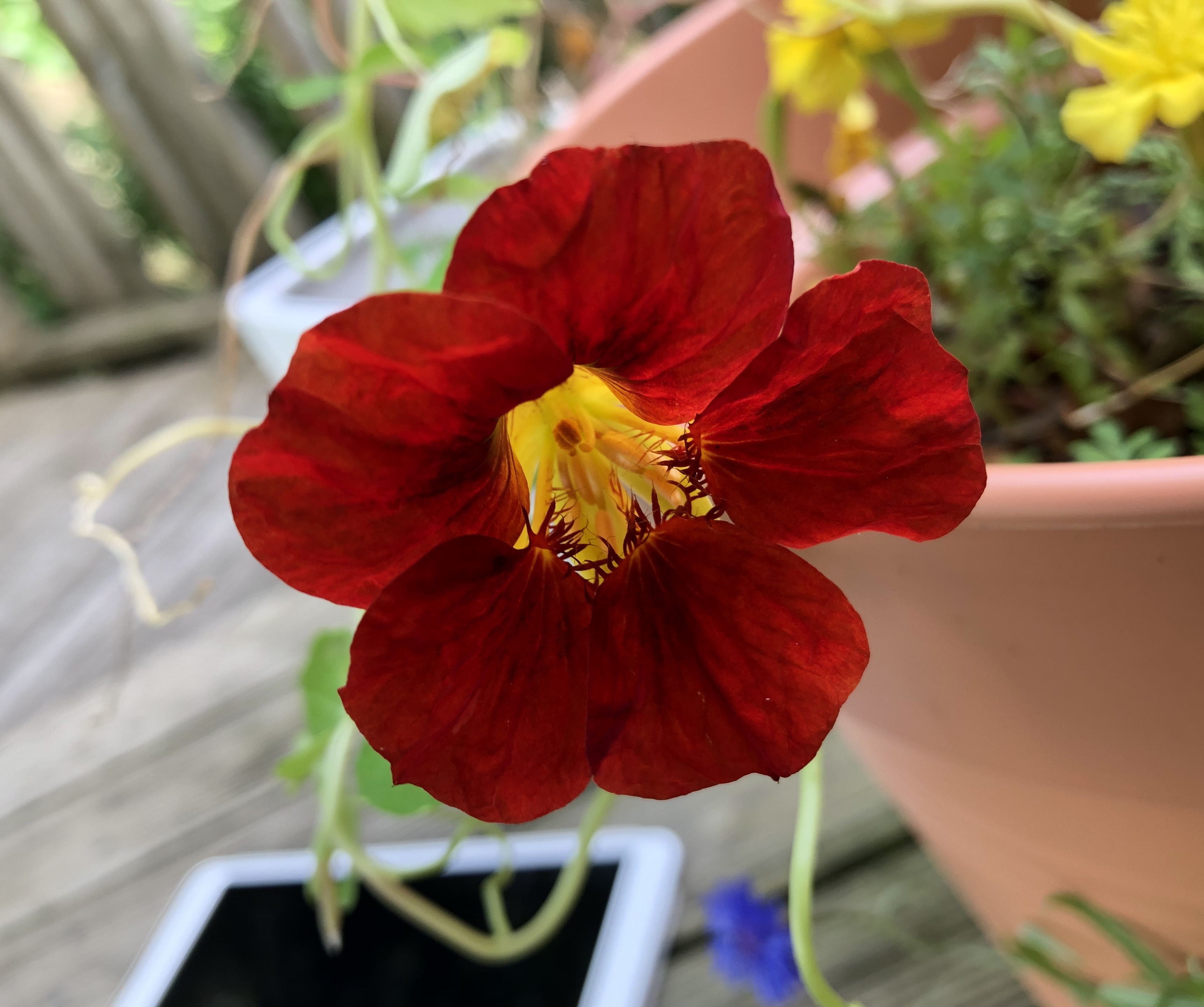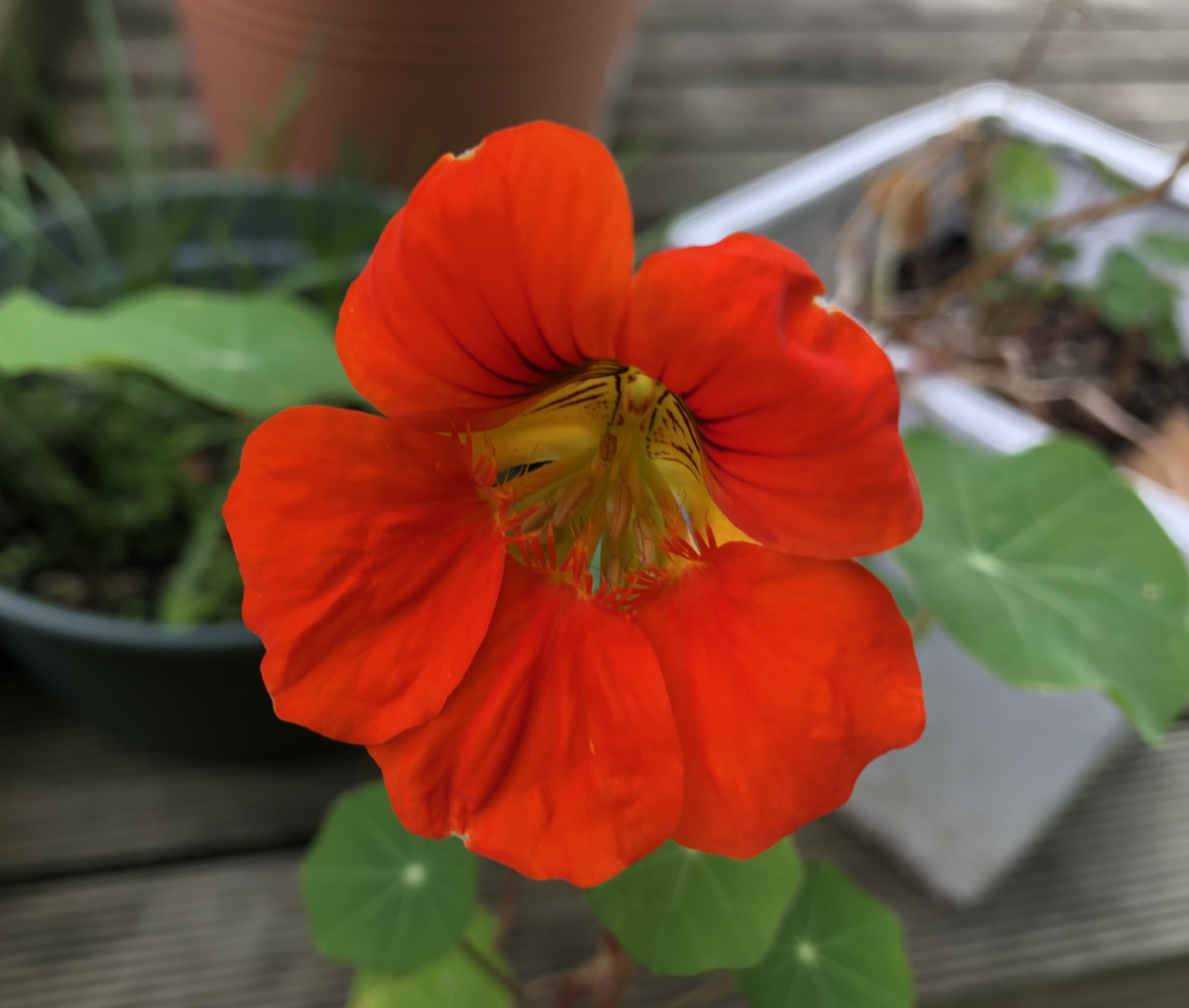 So to this week’s nasturtiums, and two lovely specimen. I think the dark red ones are called ‘Bloody Mary’.