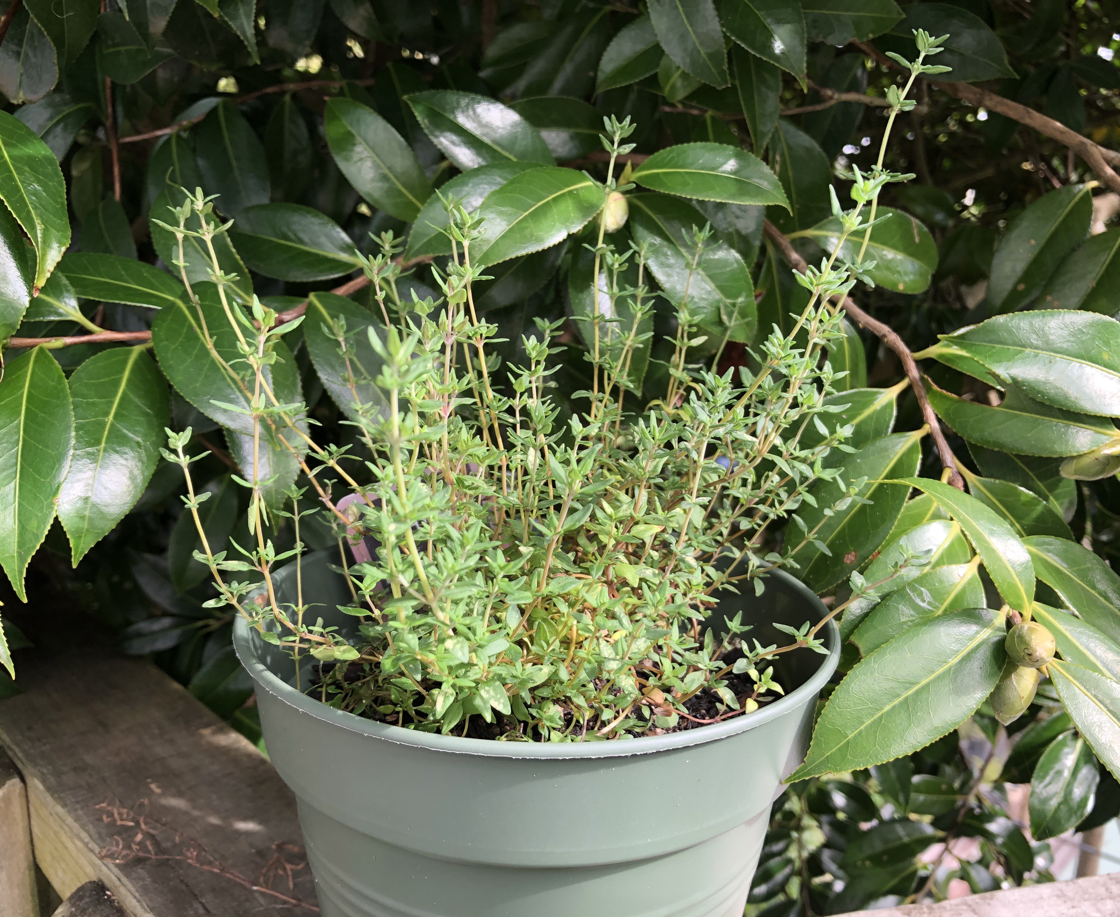 In herb corner this week, we have the most recent thyme I bought (I have a few and do use it quite a bit in cooking), one of the curry plants, one of the mints that has come back to life and more of the magnificent rosemary