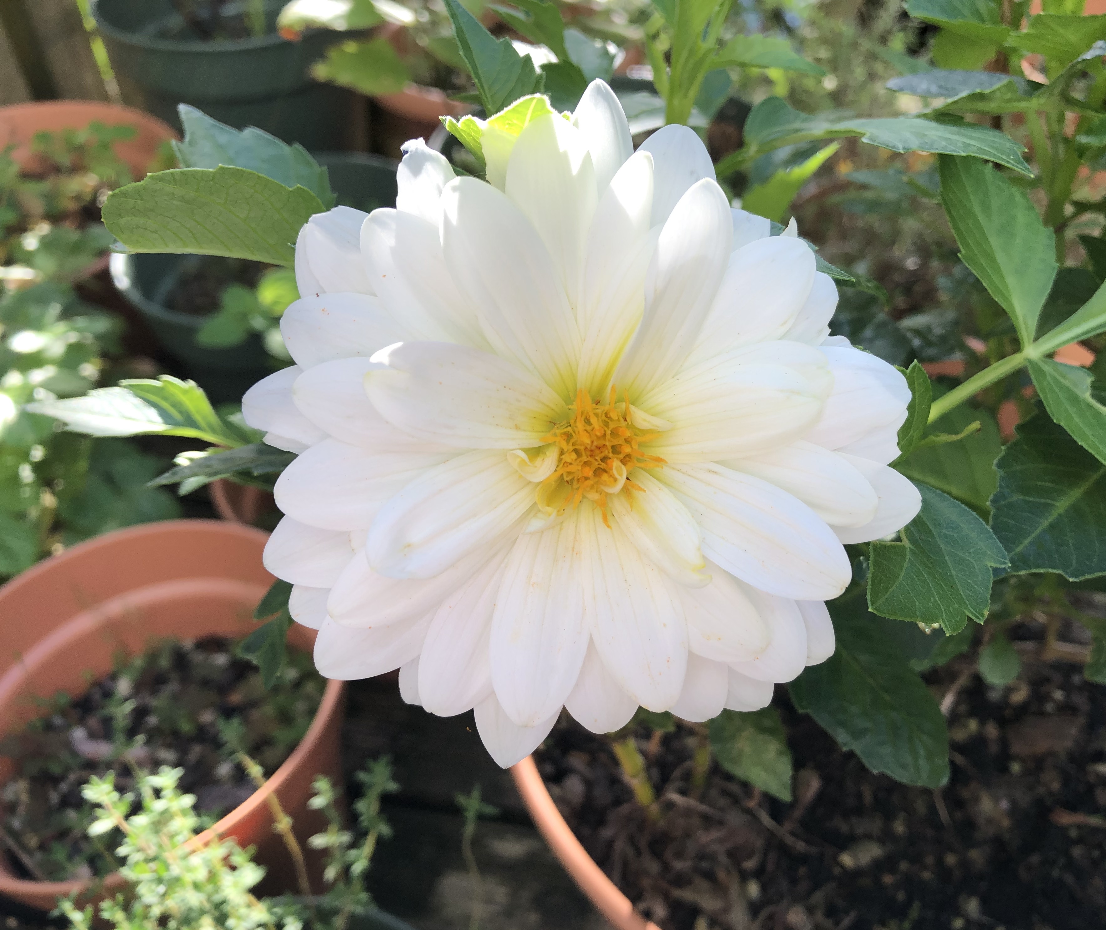 My dahlias developed a fungal infection, which has cleared up but decimated my plants, so I feel very lucky to have this one bloom.