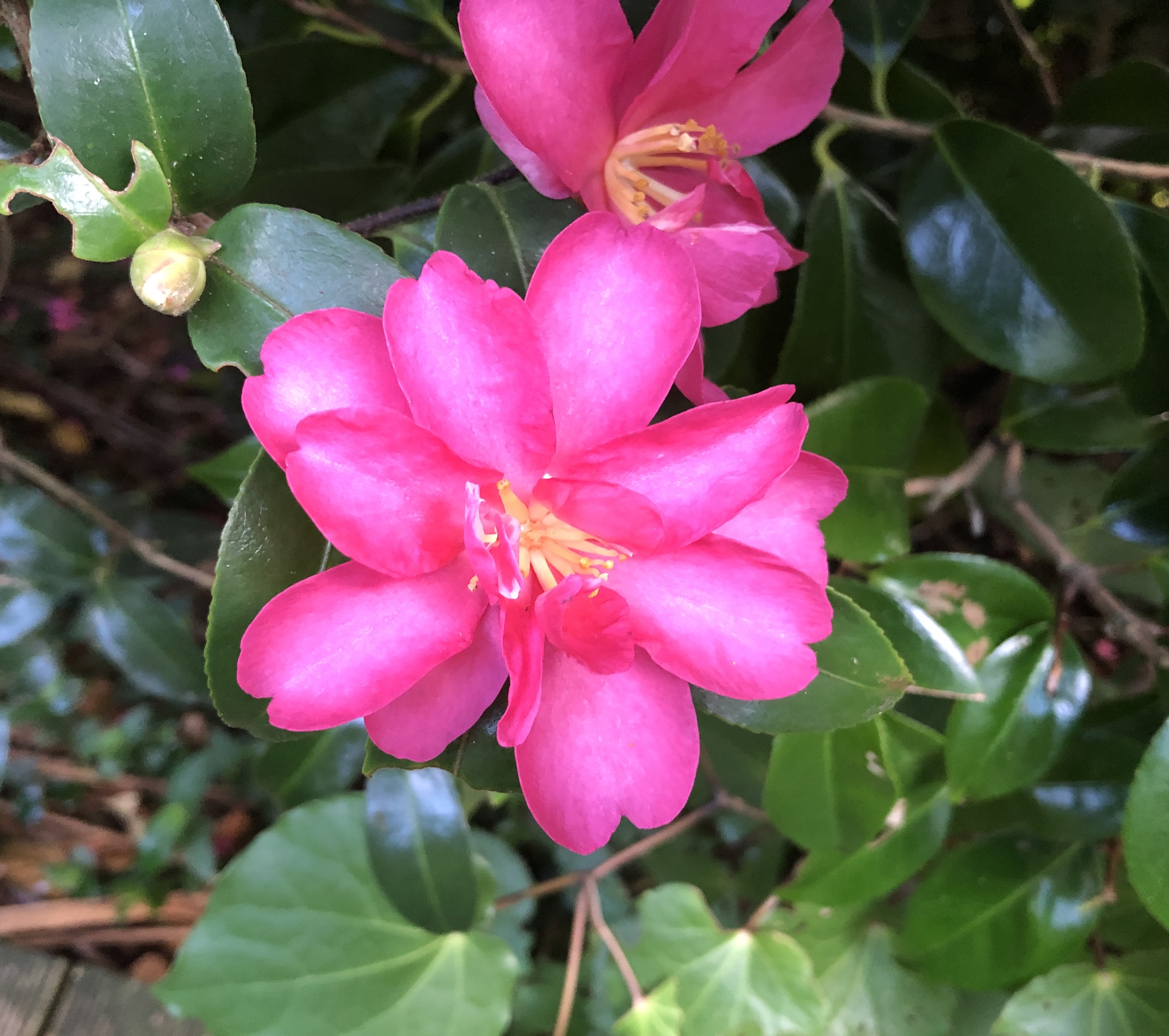 Beautiful flowers! I love how camellias bloom twice. I’ve been enjoying a fallen bloom floating in a bowl of water. It gives me joy each time I see it. Good luck with your bulbs and thanks for sharing more of your magnificent Three Kings Vine. (If you keep showing it, I’ll keep saying it!)
