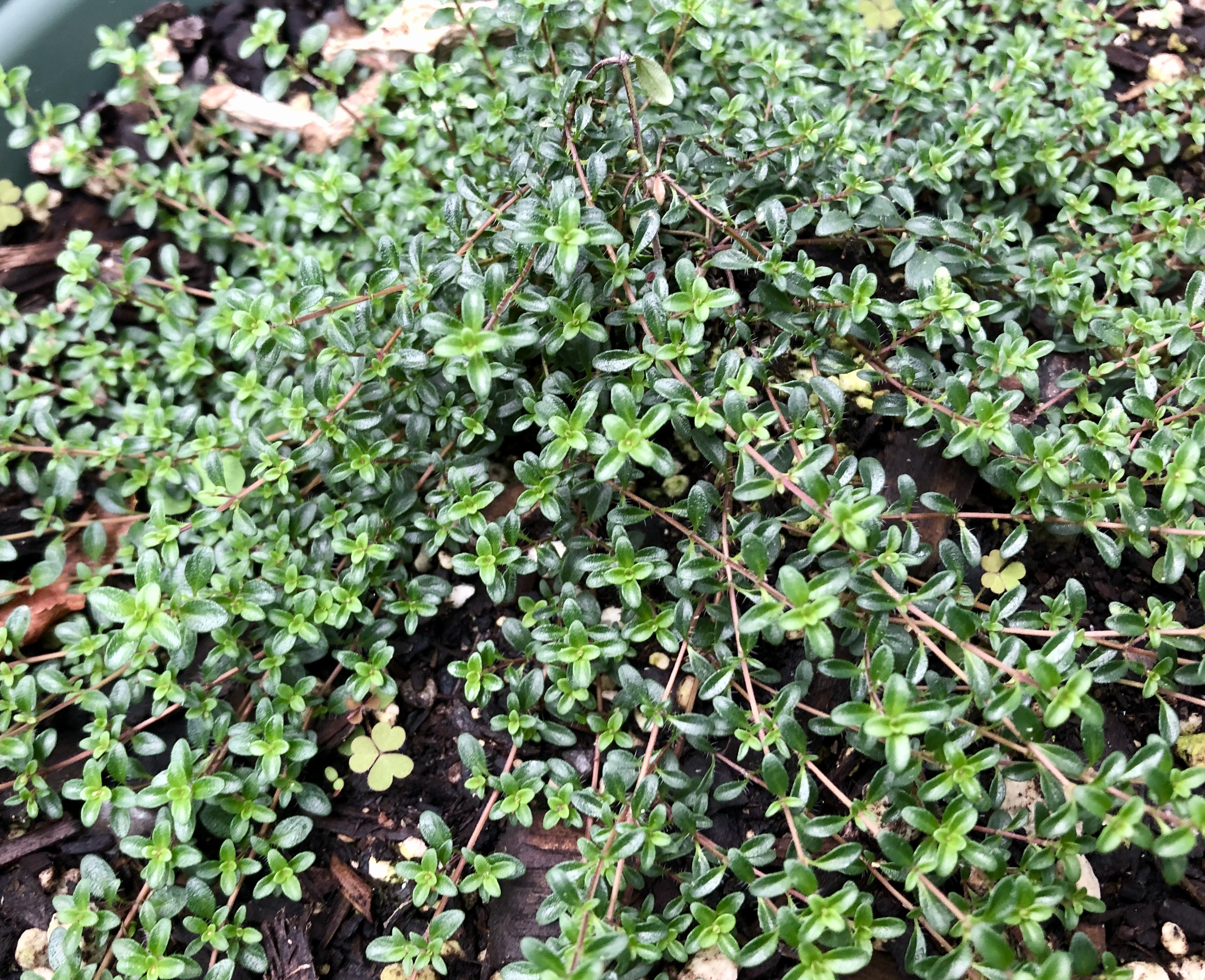 The thyme ruby carpet is looking very vigorous. I love the sulphurous spikes of mahonia blossoms.