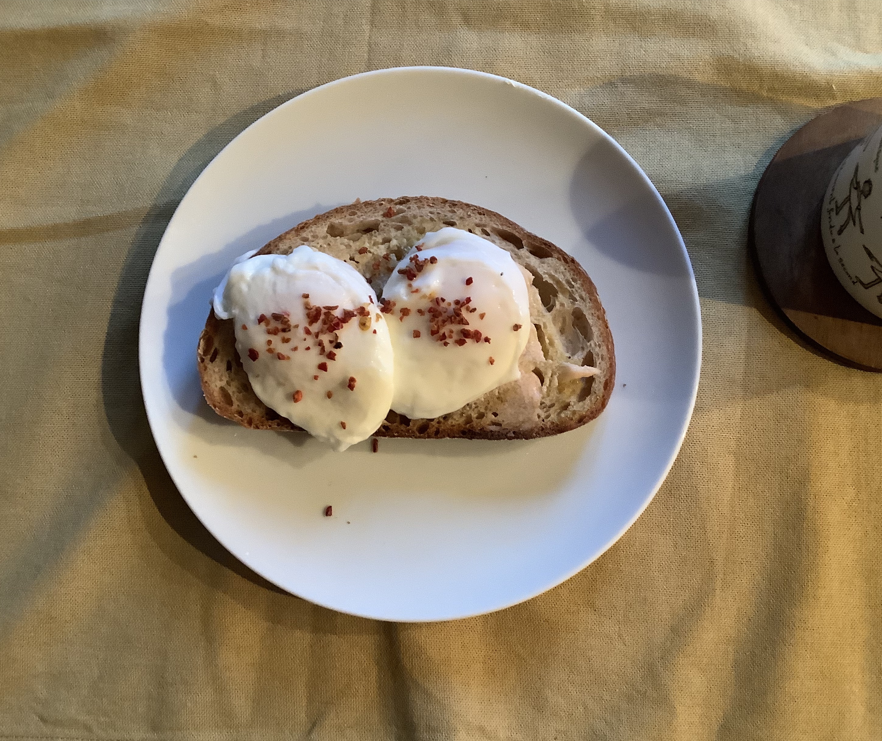 Saturday morning saw me actually make perfectly shaped poached eggs, which I just put on top of buttered sourdough and sprinkled with salt and red capsicum flakes. Our afternoon treat was a raspberry friand from Arobake, who also delivered this bread early on Saturday morning (a zopf, a sourdough and a weggli toast).