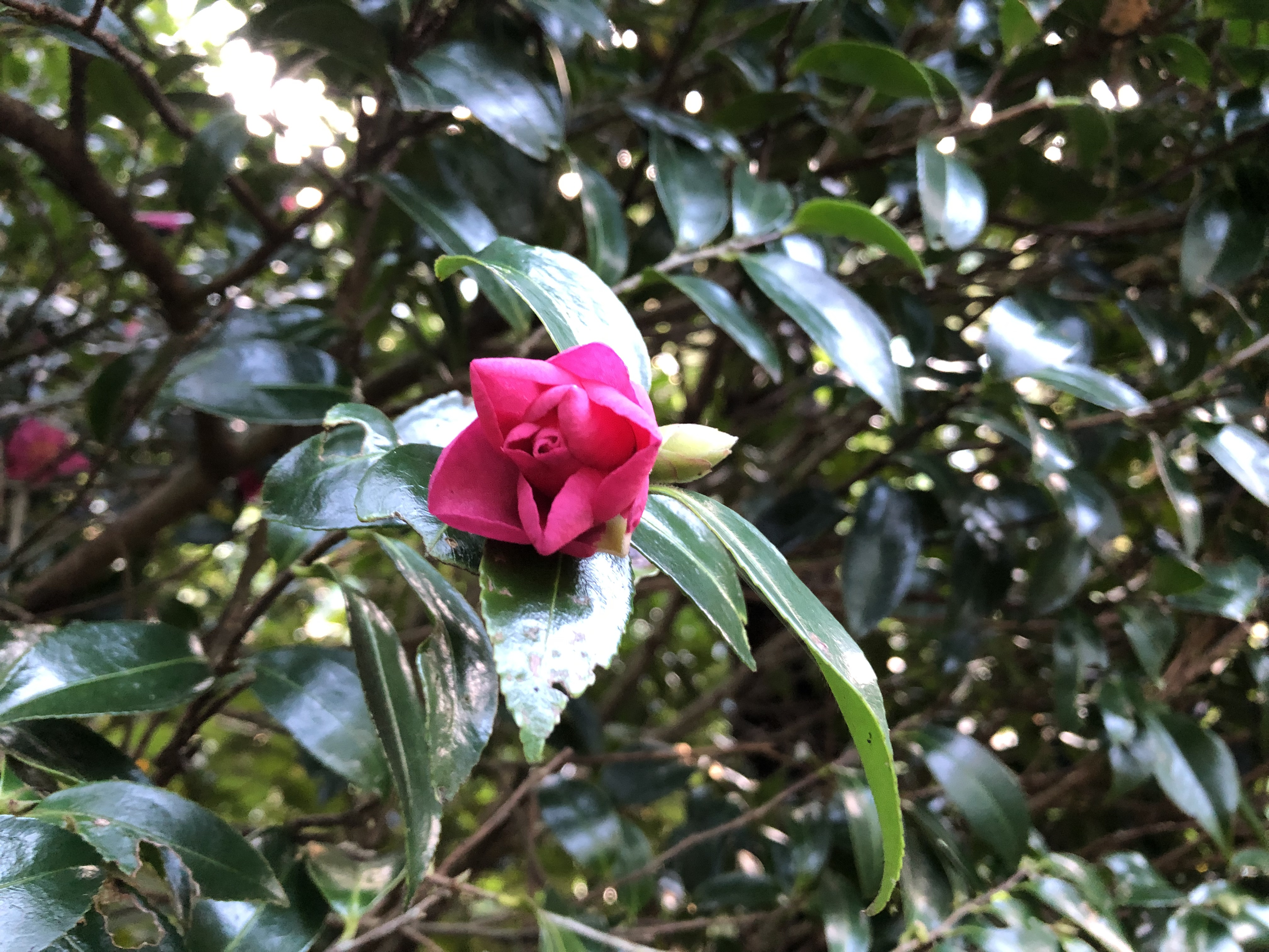 So to this week’s camellias, with flowers from one bush still in abundance and lots of fat buds waiting to pop on all the other bushes. The bright pink certainly cheers up the garden on grey days.