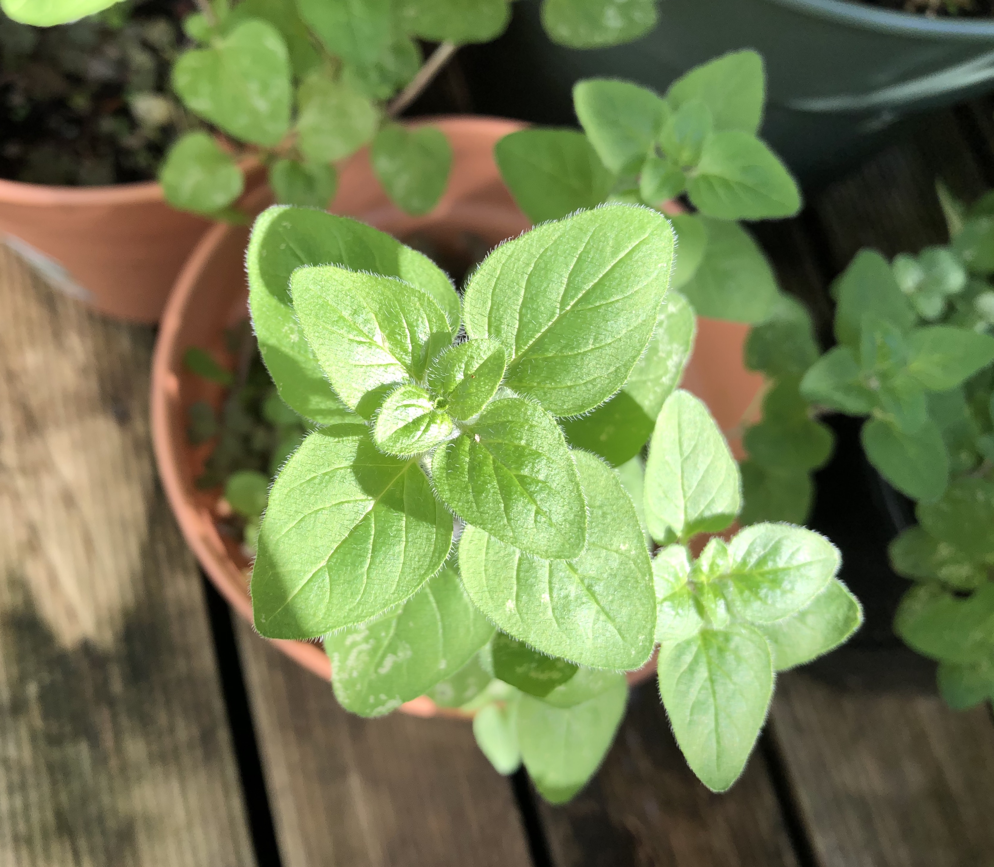 So to herb corner, and I have new flowers on two of the lavender plants, the oregano plants are looking good and the pineapple sage has sprung back to life and smelling good.