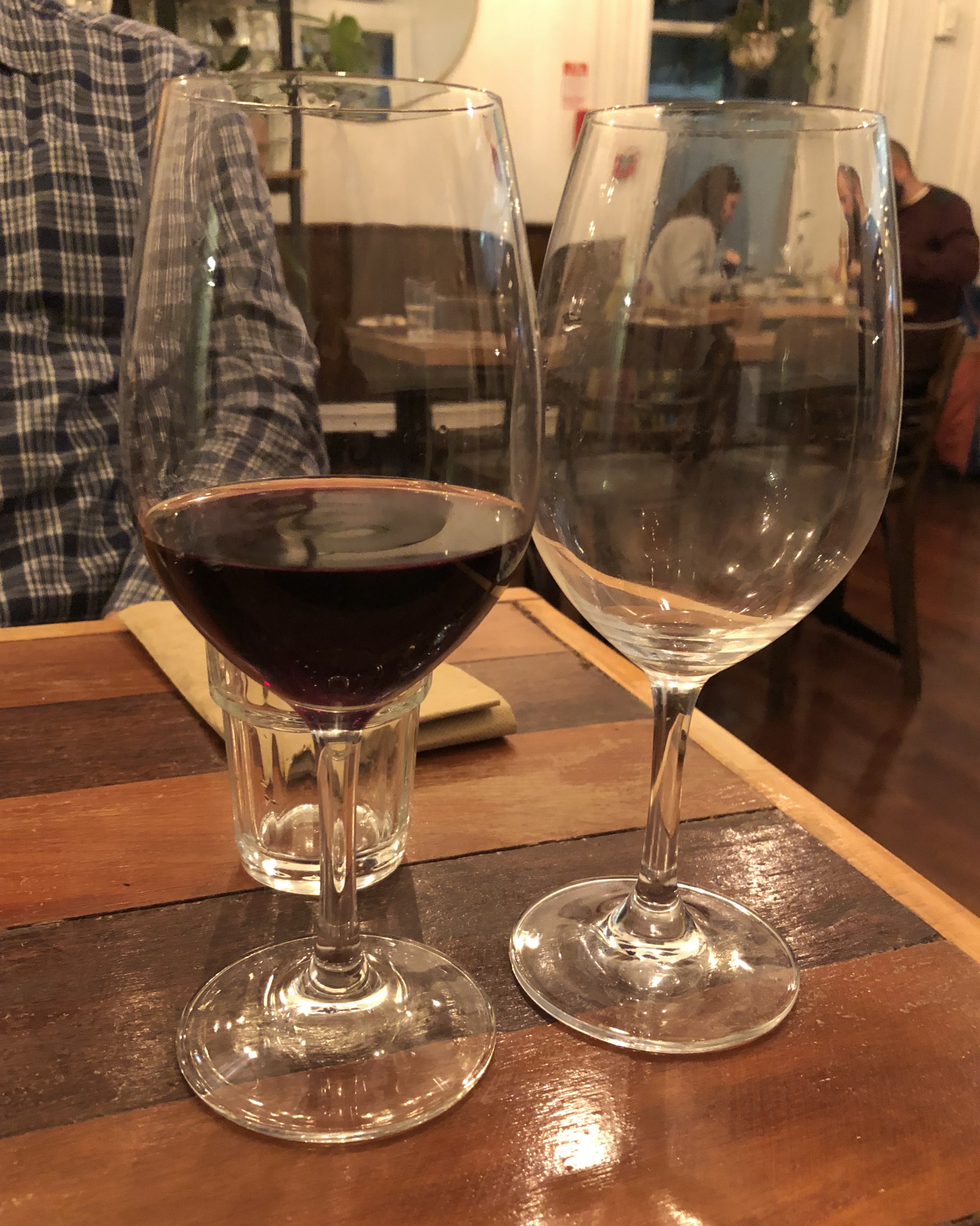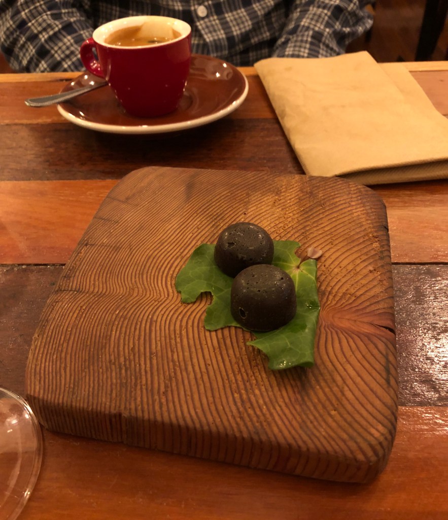 We enjoyed a glass of Daisy’s own Marlborough sauvignon blanc to start and Hamden Estate in Martinborough’s pinot noir with our main dish. As usual we had no dessert, but we enjoyed an after dinner chocolate mint (72% dark chocolate, mint and ‘a hint of kawakawa’) with our coffee.
