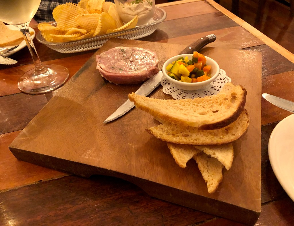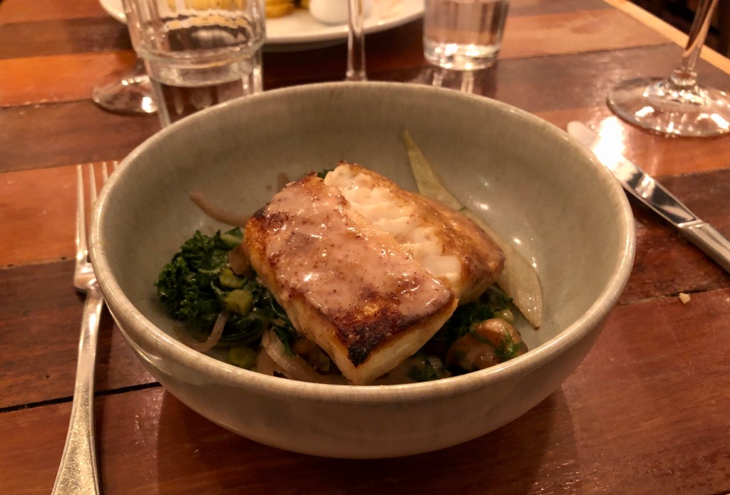 Bread and butter are brought to the table automatically, which I always appreciate, especially when it is as good as that served here. To start, we shared the wild pork and duck liver terrine served with Daisy’s own picallili and toast, and waffle crisps with onion dip. These are no ordinary crisps or a dip made from a packet of onion soup, but a carefully crafted dish from real onions and sour cream. The recipe was published in Cuisine magazine if you want to try it yourself!