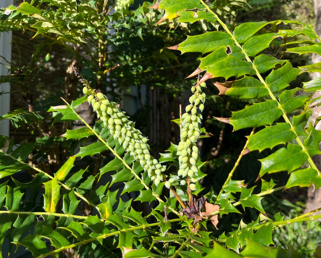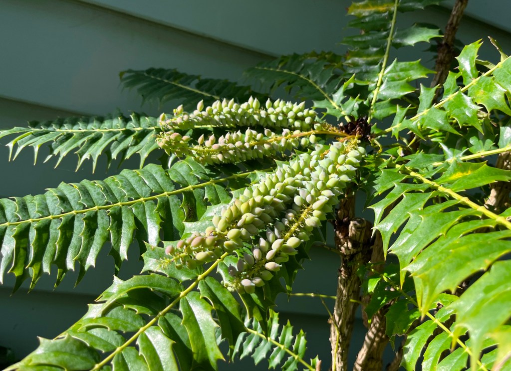 There isn’t that much new this week, and I have no energy to weed or even do a proper status check on bulbs, but have been monitoring the mahonia berries which are still to turn blue.