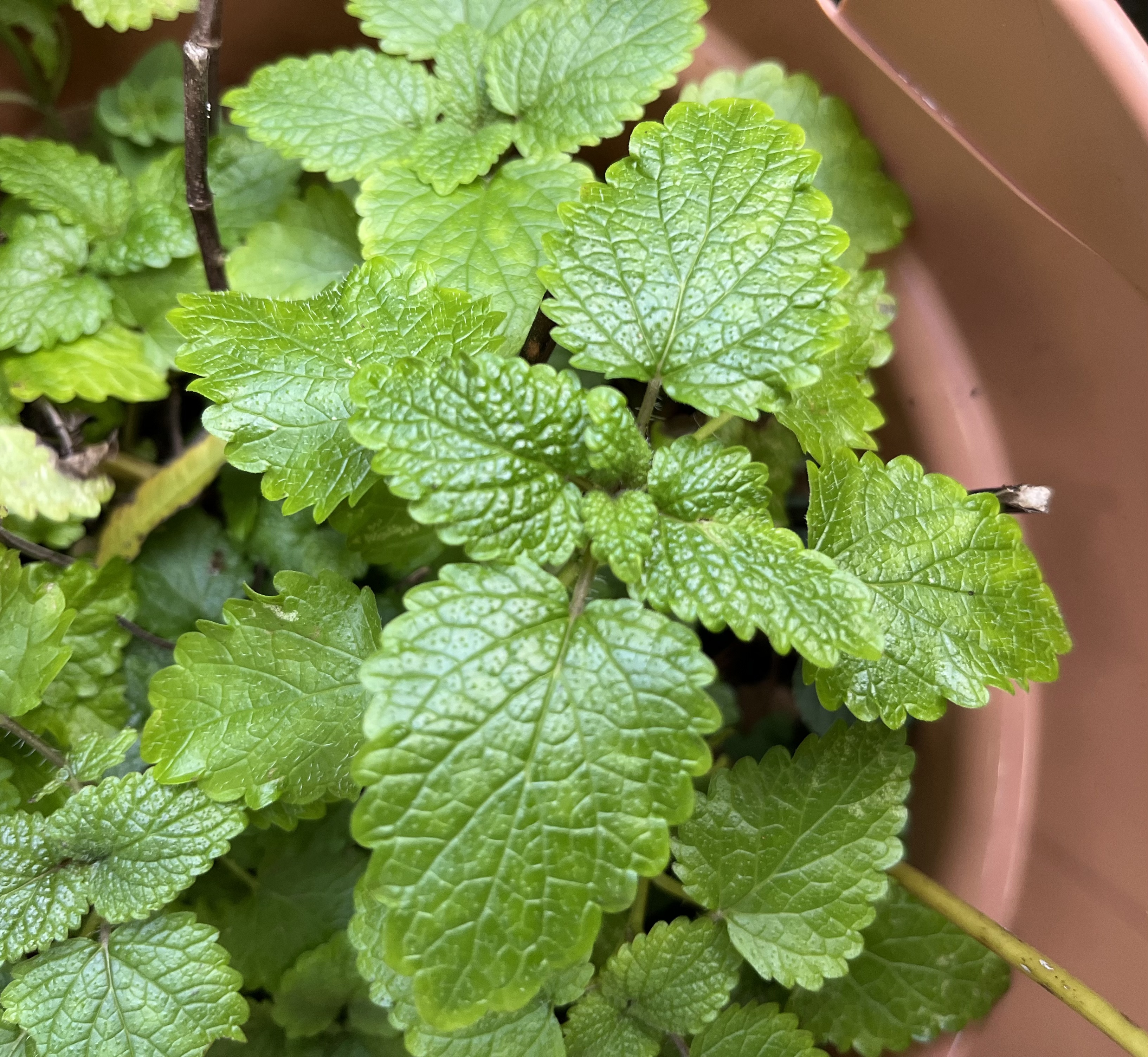Another good thing…I haven’t lost my sense of smell, so I can still enjoy the rosemary (this plant is full of flowers), lemon balm and pineapple sage.