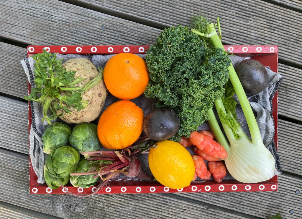 Once again I’m hungry after reading your post! 😀 I’m loving that gorgeous box of fruit & veg too.