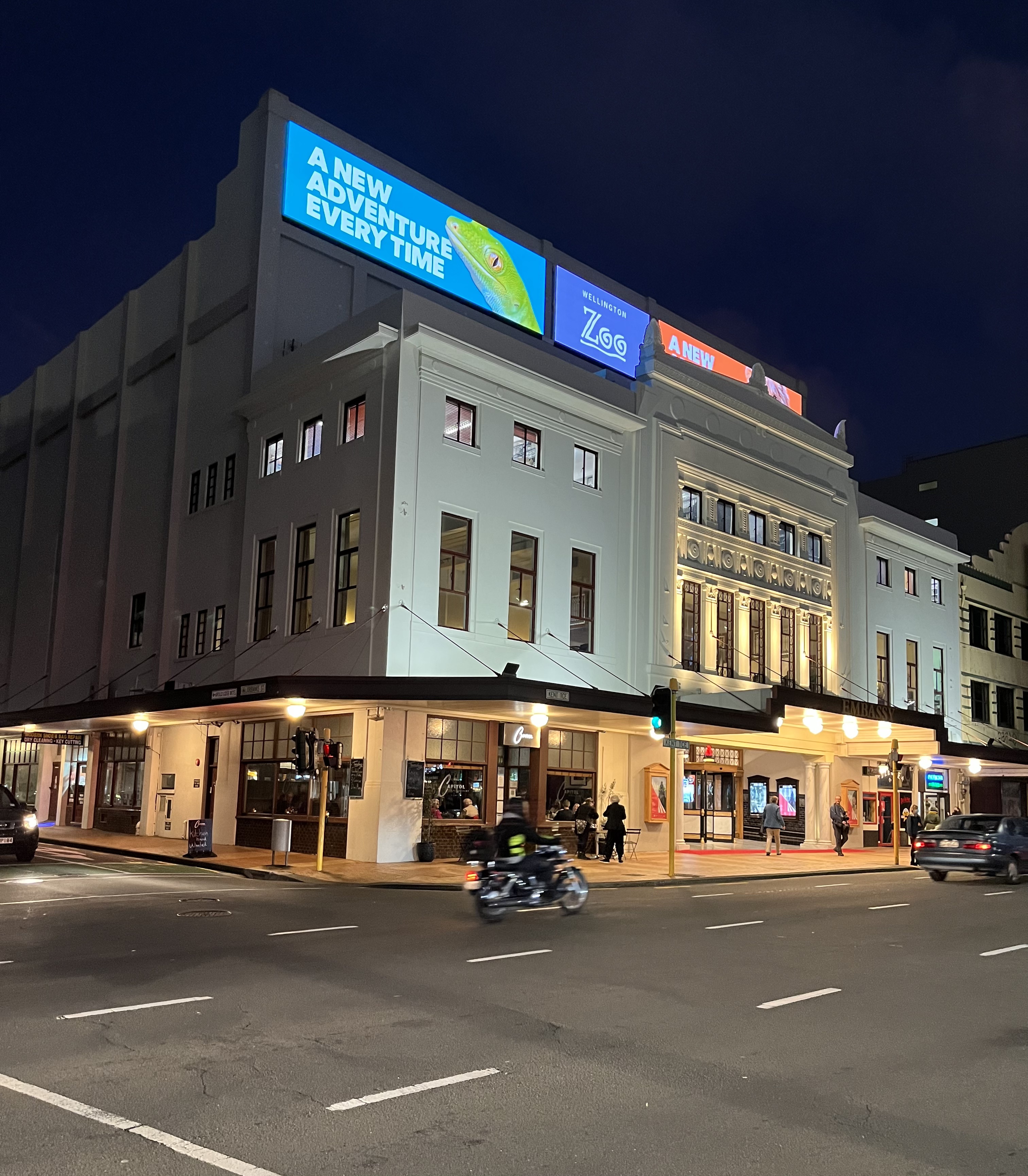 It was also the first night of the New Zealand International Film Festival – if you look below you can just spot a red carpet outside the Embassy Cinema which is next door to the restaurant (situated on the corner).