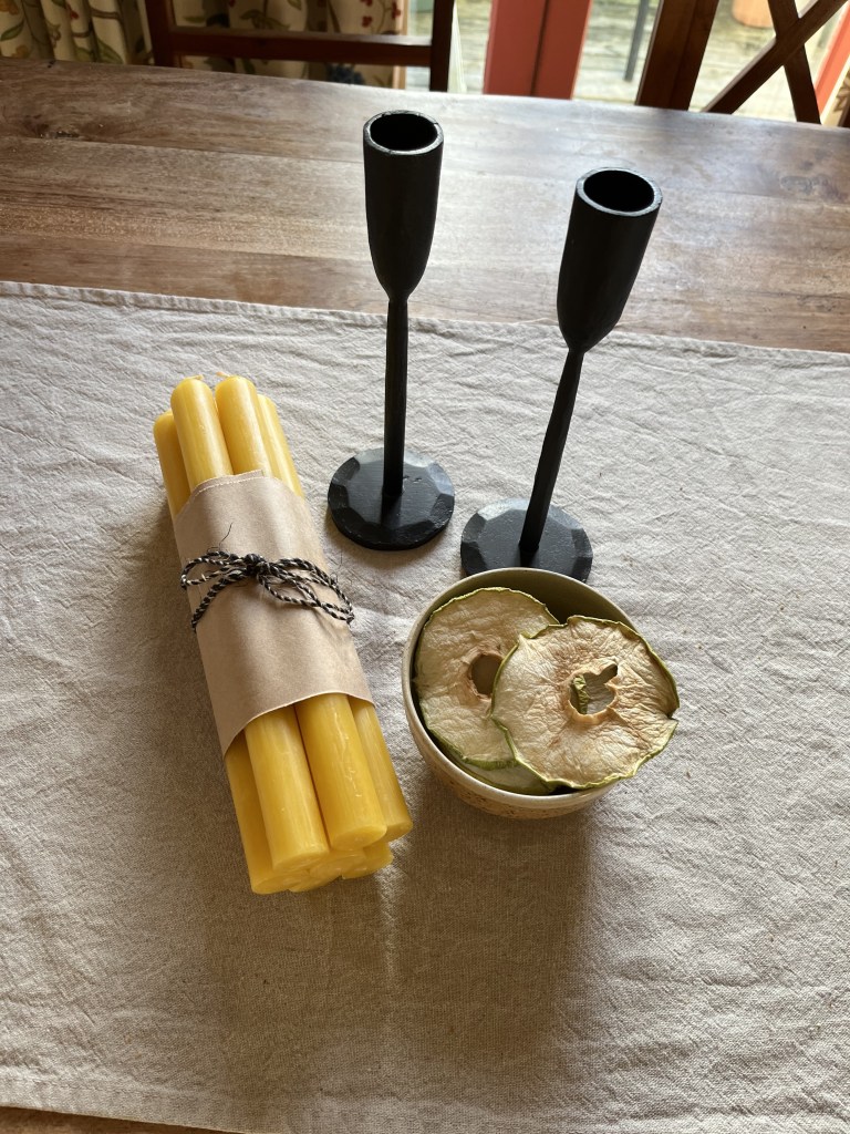 I also went shopping on Wednesday, picking up some much needed new candlesticks from Magnolia Trading Company – needed after one of my lovely glass ones cracked in the heat – and some more beeswax candles. From there I headed over to Good For, a ‘refillery’ selling all sorts of bulk items in a beautiful looking shop. I picked up a jar of tahini and these lovely looking dried green apple rings that I guess I might use for a lunch box snack treat.