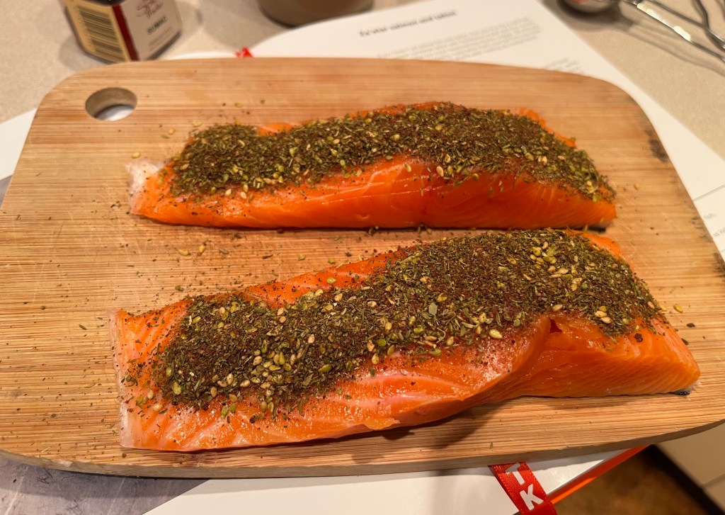 We all need a dish that looks exotic and fancy but is, in fact, so simple anyone could make it. You know the sort of thing – simple, good ingredients combined in such a way that the end result is quite lovely. One such dish is za’atar salmon and tahini from Ottolenghi’s Test Kitchen Shelf Love.