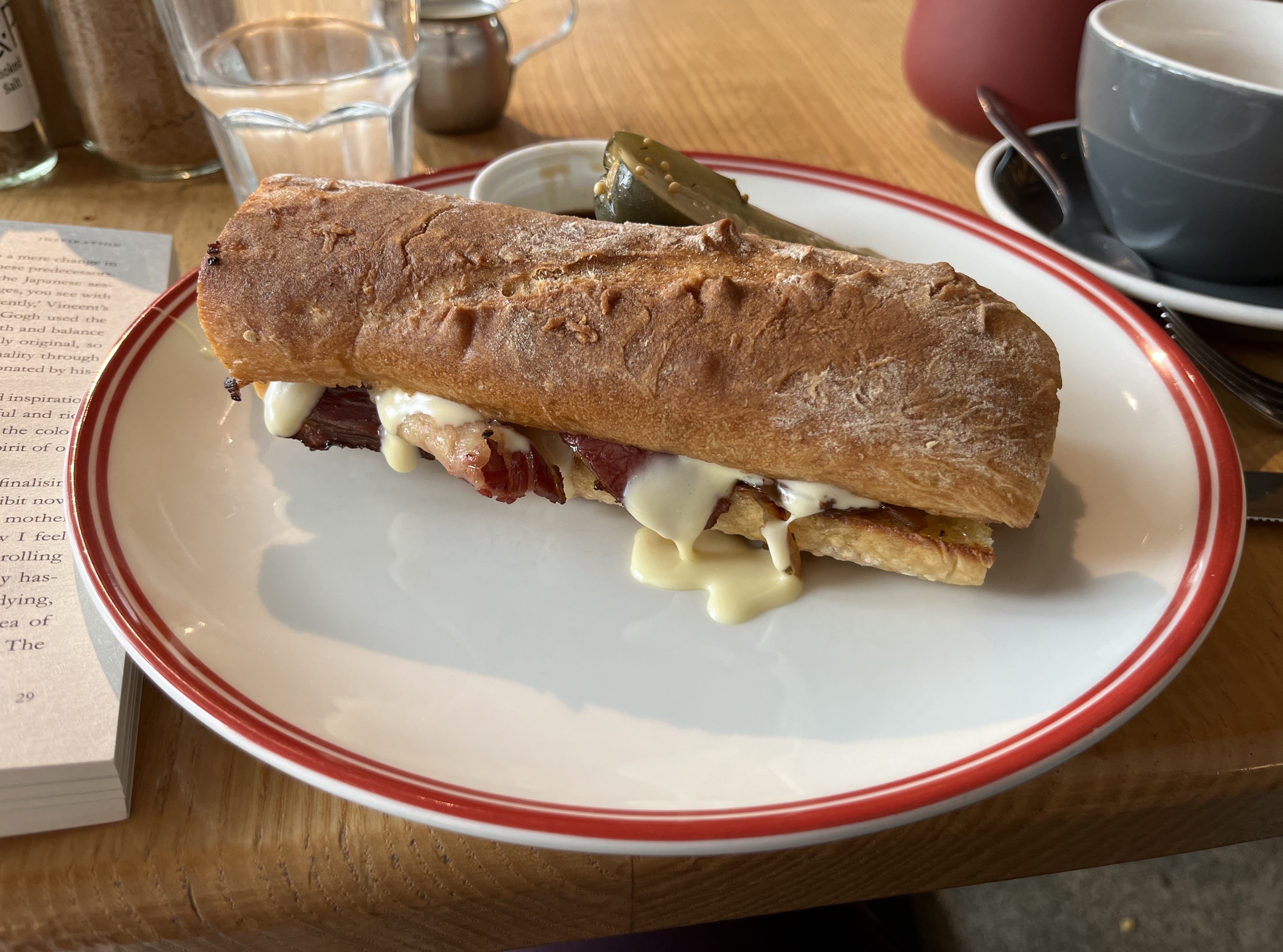I didn’t go back to work until Thursday, so on Monday I fitted in an extra Pilates class which my body definitely needed after a 13 hour flight. I had lunch at Pickle & Pie – a great pastrami based sandwich with a giant piece of pickle (see below) – and ended up having a lovely conversation with my server about the book I was reading, Dunedin and Edinburgh. A real small pleasure.