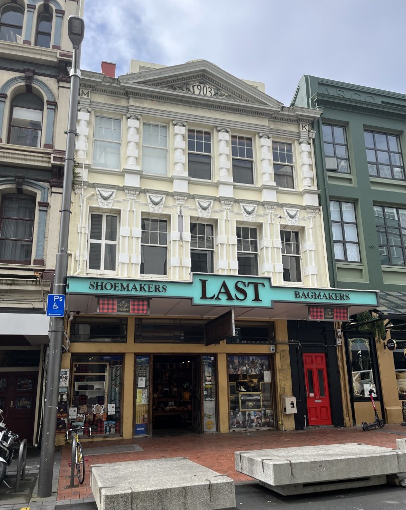 From there I walked along to the ‘bottom end ‘ of Cuba Street, where you can see the early 20th century Kennedy Buildings (read more here), the sculpture The Philantropist’s Stone by Scott Eady and this lovely art nouveau building from 1903.