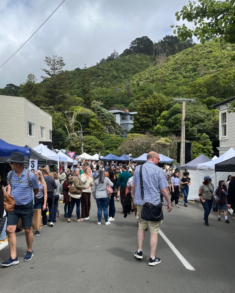 On Sunday we headed down to the annual Thorndon Fair, which takes place on the first Sunday in December. There are stalls selling everything from wine and olive oil to dog treats and cheese. The grey skies don’t give an idea of the temperature, better shown by shorts and short sleeves! In the picture on the right below you can see not only my husband but the grey building in the background is Premier House, the Prime Minister’s residence. The front entrance of the house is open for the Fair, home to a small stage and a few stalls like the one below.