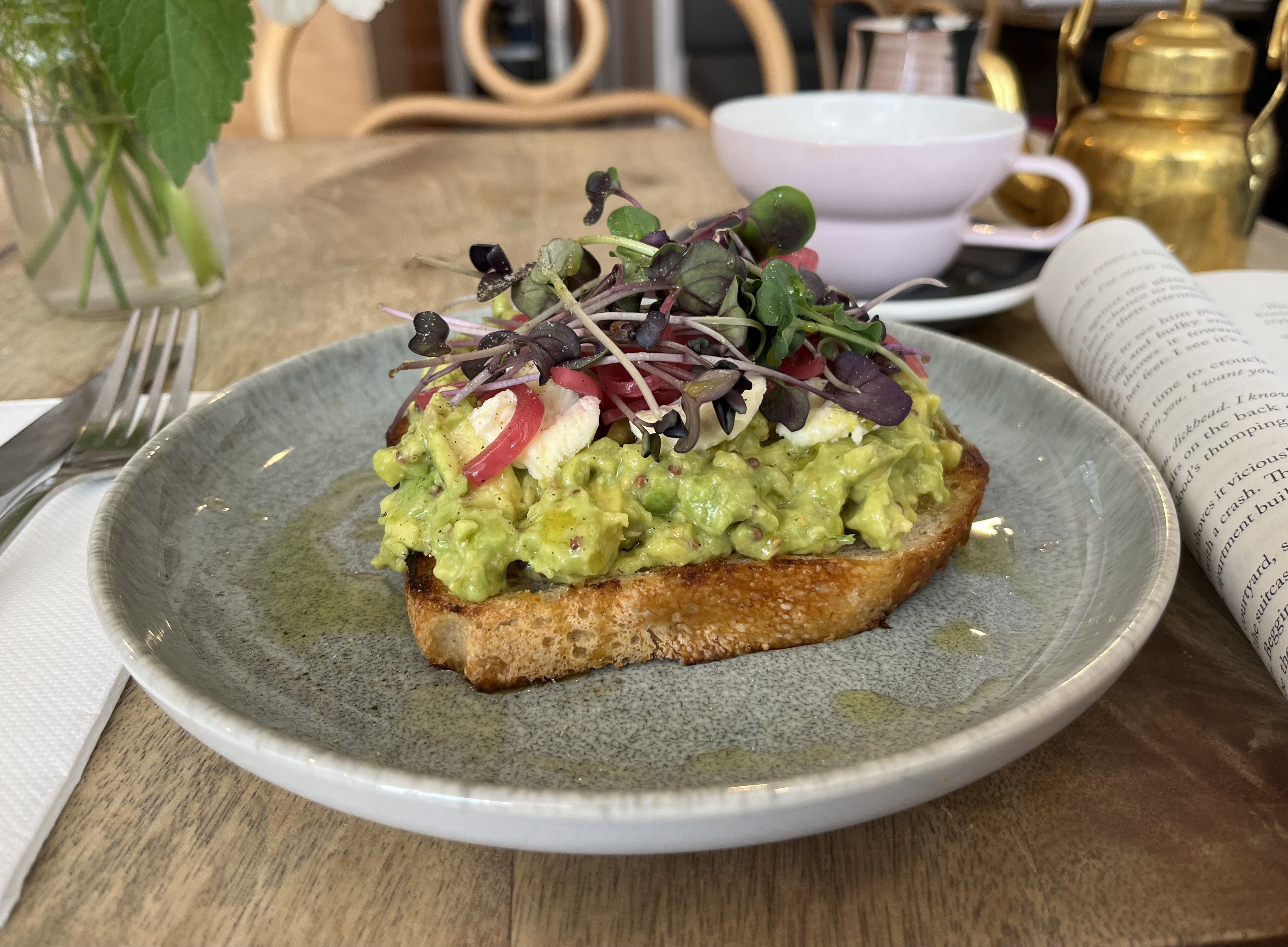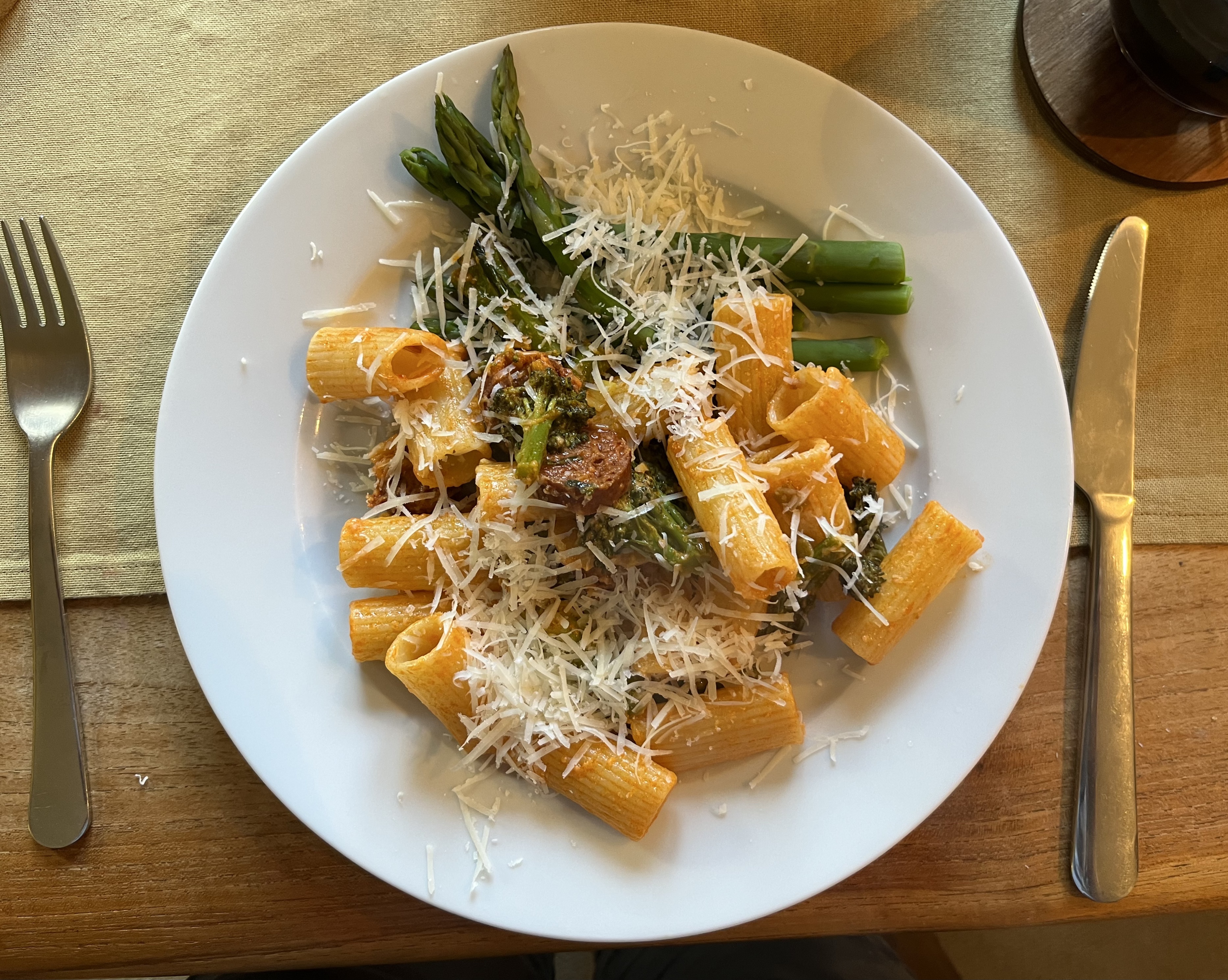 No small pleasures post would be complete without some reference to the ‘good eatings’ of the week. There was avocado toast at Squirrel on Wednesday, boiled eggs (with Kalles kaviar) for Saturday’s breakfast, a salad of feta, green beans and tomato to have with lamb burgers and pasta with spicy Hungarian salami and broccoli with asparagus on the side and all topped with parmesan inspired by Alison Roman’s recipe (I have never seen broccoli rabe for sale here).