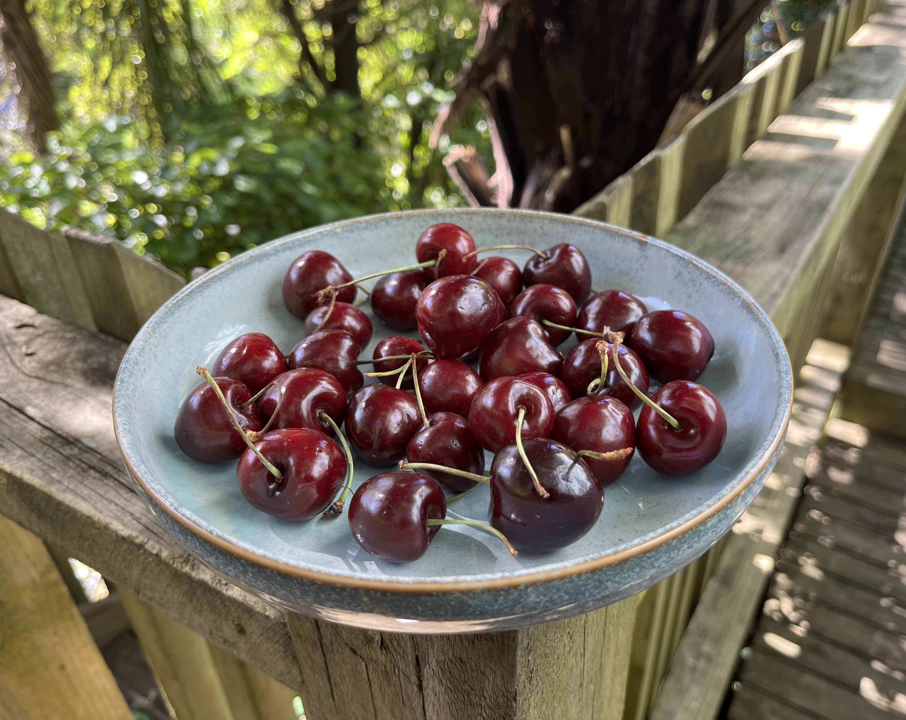 Those cherries look delicious – as does the rest of your food. It is lovely to see such bright hydrangeas too.