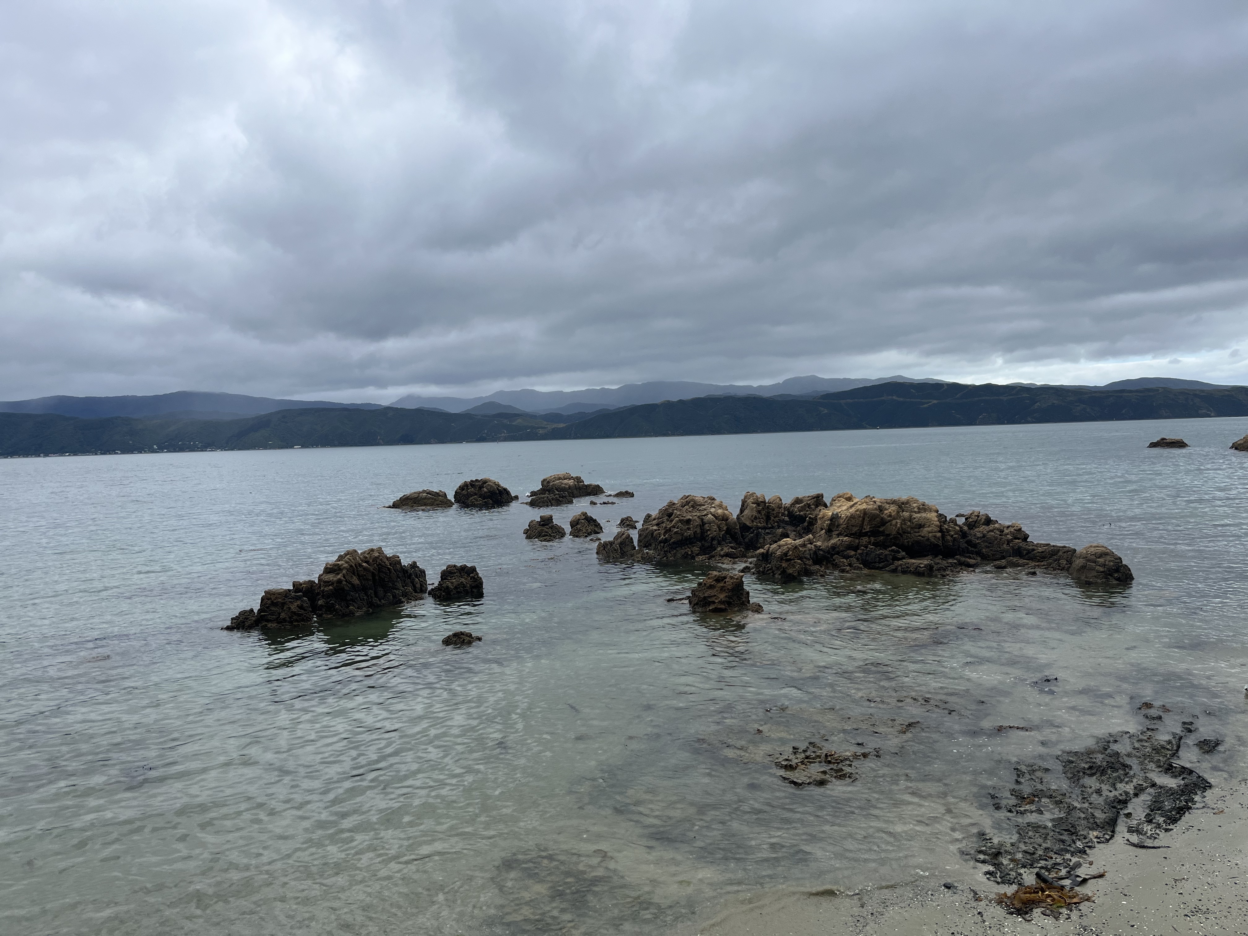 The weather at the start of the week was rather different to that today, with grey skies and some heavy rain on Thursday. At least we escaped the cyclone that devastated parts of the country. On Tuesday, the last day of Karl’s holiday, we drove over to Scorching Bay. The weather wasn’t that great, but the skies and sea looked suitably dramatic.