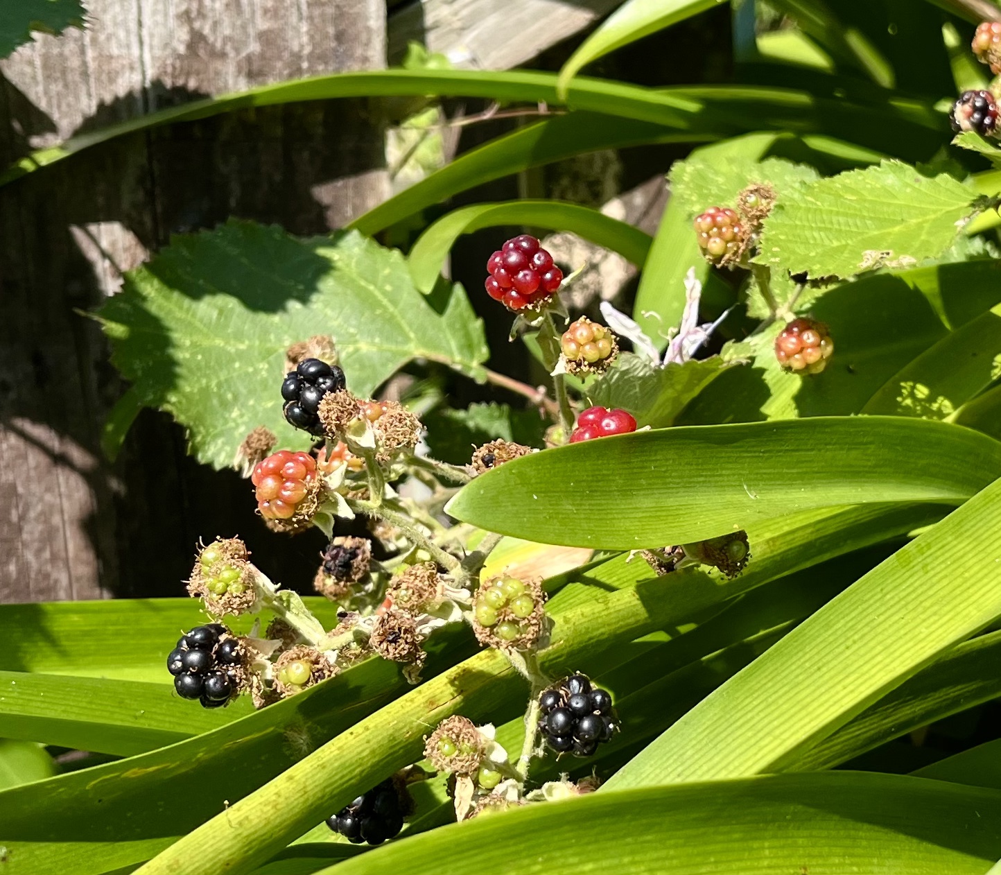 Finally, I confess these are actually not in the garden, but I spotted these brambles at the top of the stairs on the way up to our house. It was such fun to see them, so I thought I would just share them here. They are very close to our house so I have ‘adopted’ them.