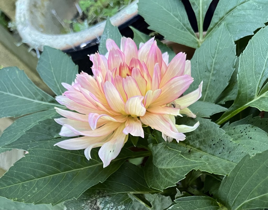 As I won’t be participating in Six on Saturday hosted by Jim over at Garden Ruminations, I thought I’d take the chance today to update on my dahlia as I now have two blooms (well one is almost out…). I can’t tell you how happy this has made me! The dahlia is Pablo.