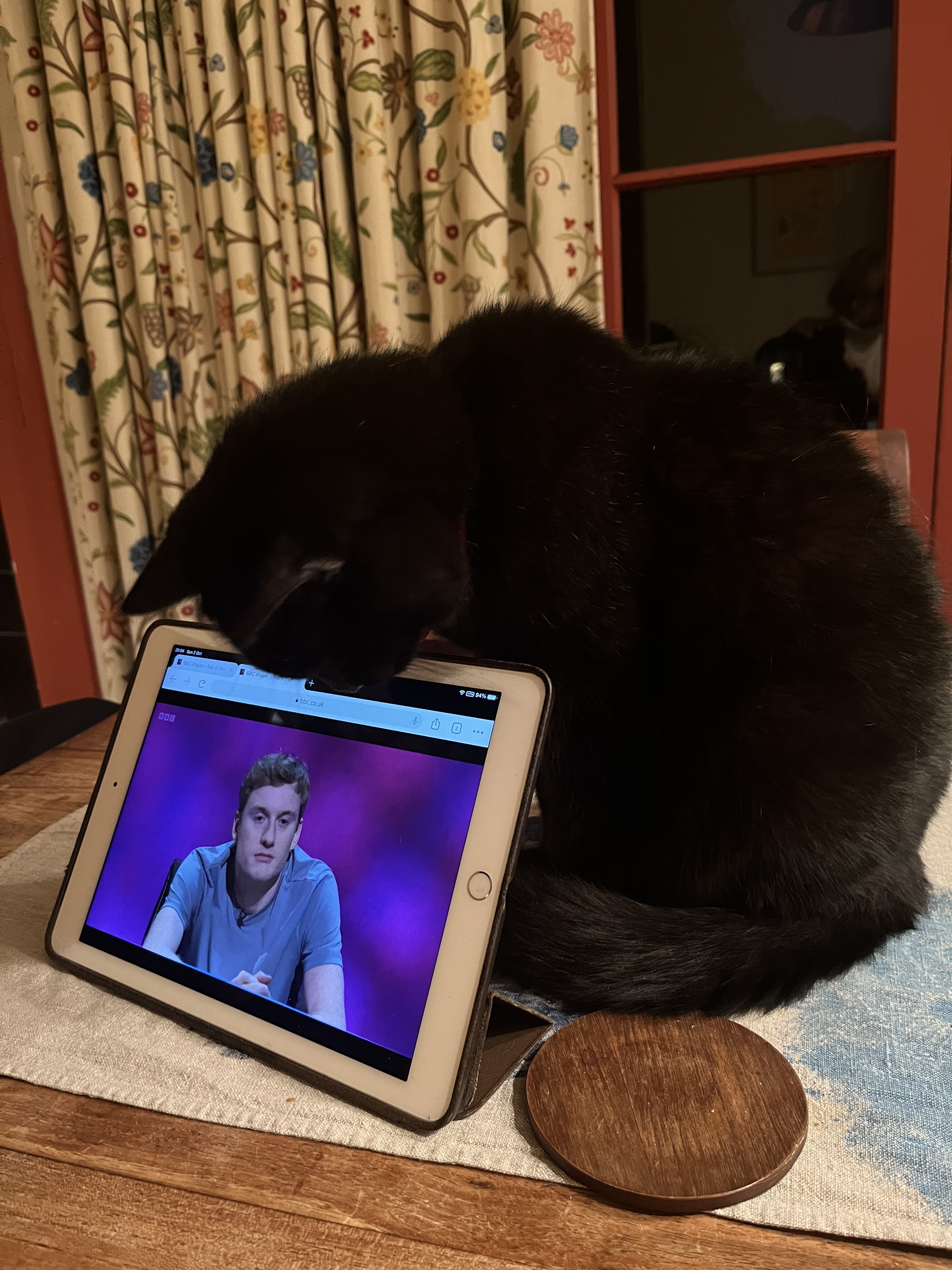 Charlie had a number of hobbies…which came and went according to the seasons. On cold winter days, he was quite content to watch videos for cats on YouTube, or take an interest in what we were watching, though he wasn’t sure to make of the photograph of himself! And no he wasn’t supposed to be on the table…….