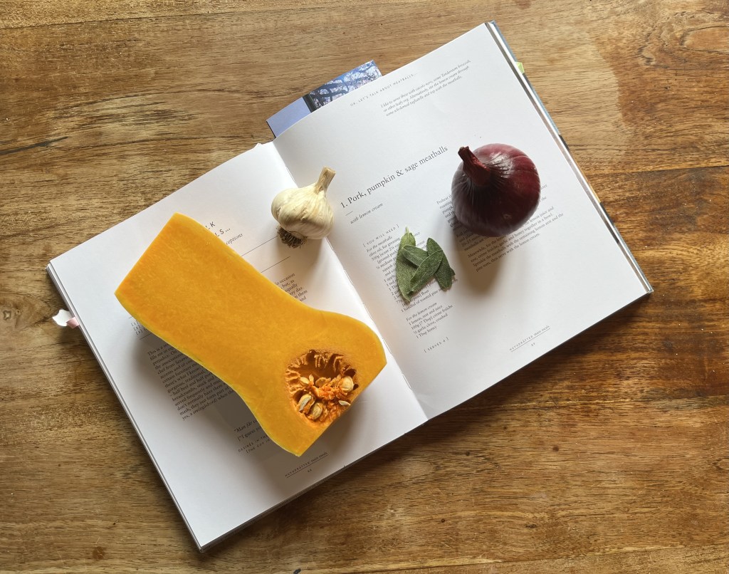 I had long considered making these pork, pumpkin and sage meatballs from Steffi Knowles-Dellner’s Lagom, a cook book I have featured more than once on this blog (eg parsnip and lemon loaf cake, seeded apple bread), so with time on my hands this Wednesday, I decided to give them a go. I used butternut squash for the pumpkin, so very much in keeping with the start of autumn, and picked few fresh sage leaves from the garden.