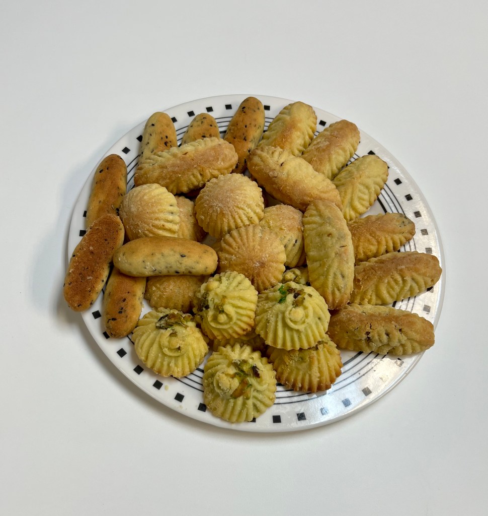 Today at work, a colleague brought in some maamoul, a sort of biscuit from the Middle East. Some were filled with dates, some with pistachios and others contained black sesame seeds. They were gorgeous, and I am hoping my colleague will bring me back the special moulds from Jordan so I can have a go at making these myself. The picture was taken in the office so the light and background leave a lot to be desired.