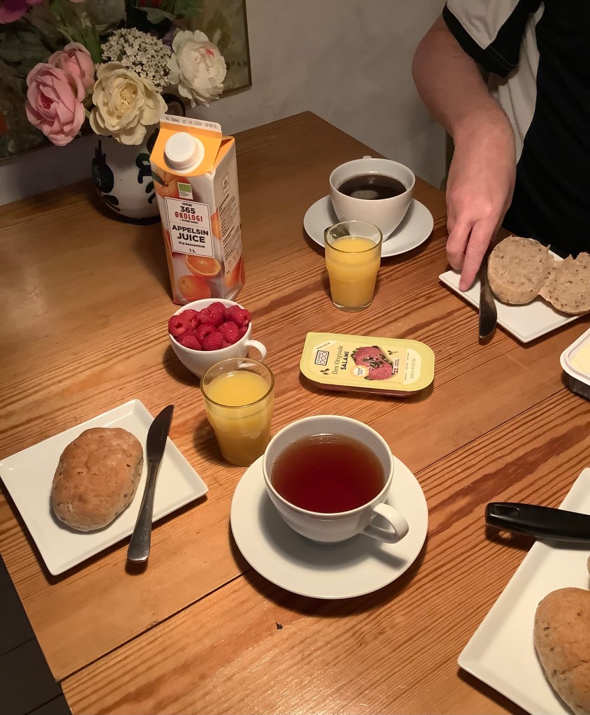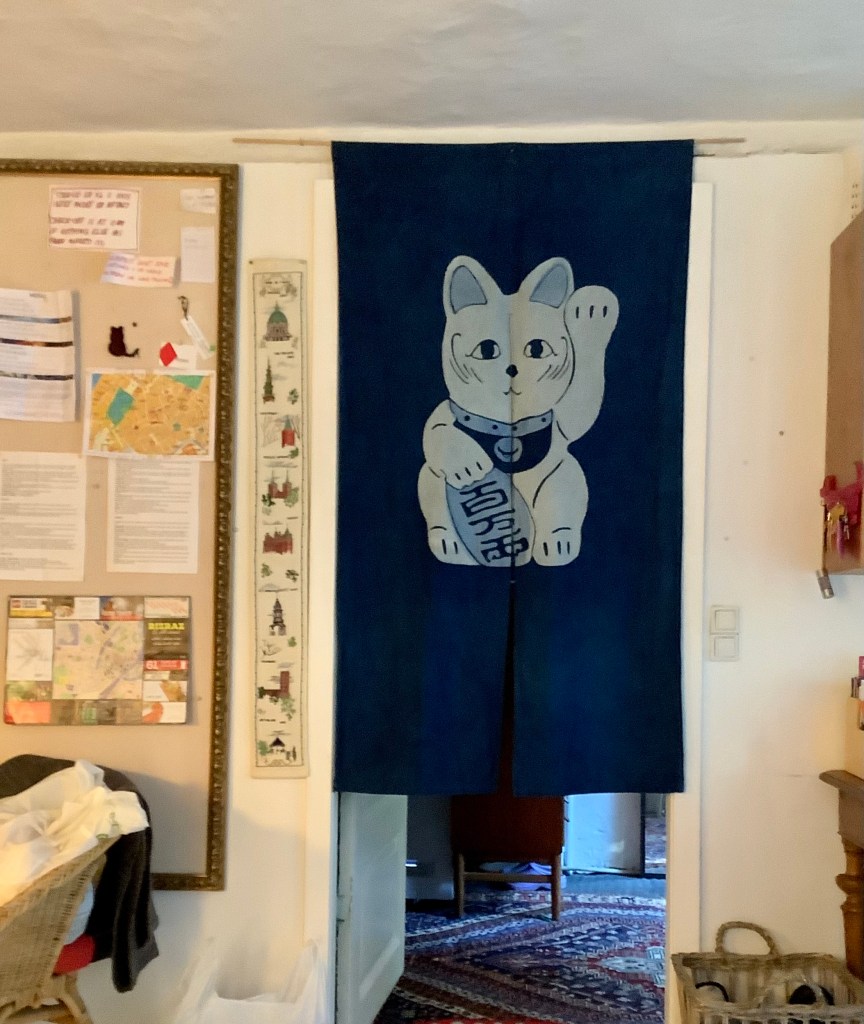 The courtyard is filled with flowers (which I will feature on Saturday), a large black cat, and lots of interesting things like bird boxes, little sculptures and, of course, washing hanging out to dry. Inside the flat is cosy and welcoming, with a small, well equipped kitchen and table, comfortable bed and bathroom. We enjoyed leisurely breakfasts, which on Sunday morning, included some delicious fresh raspberries.