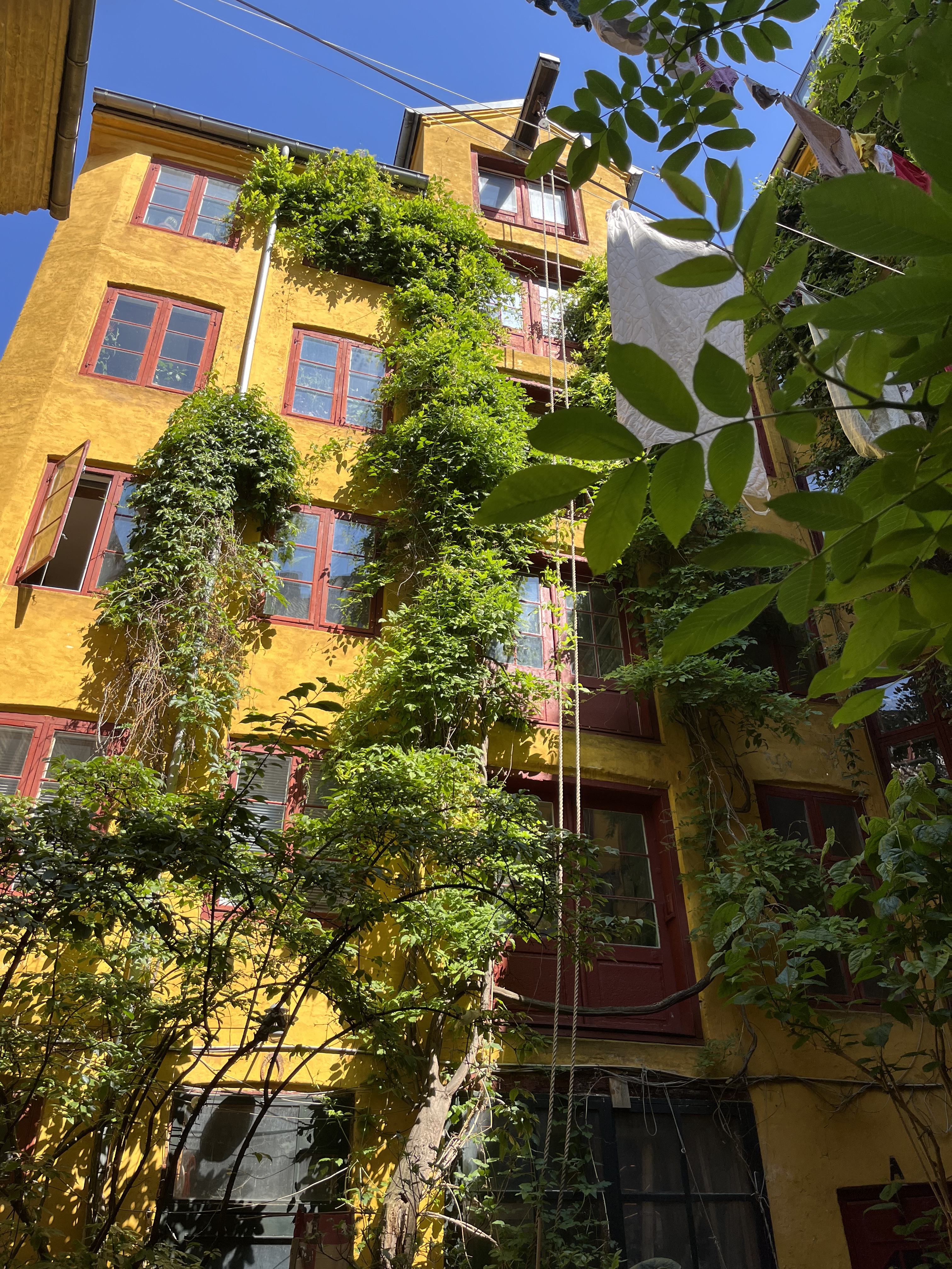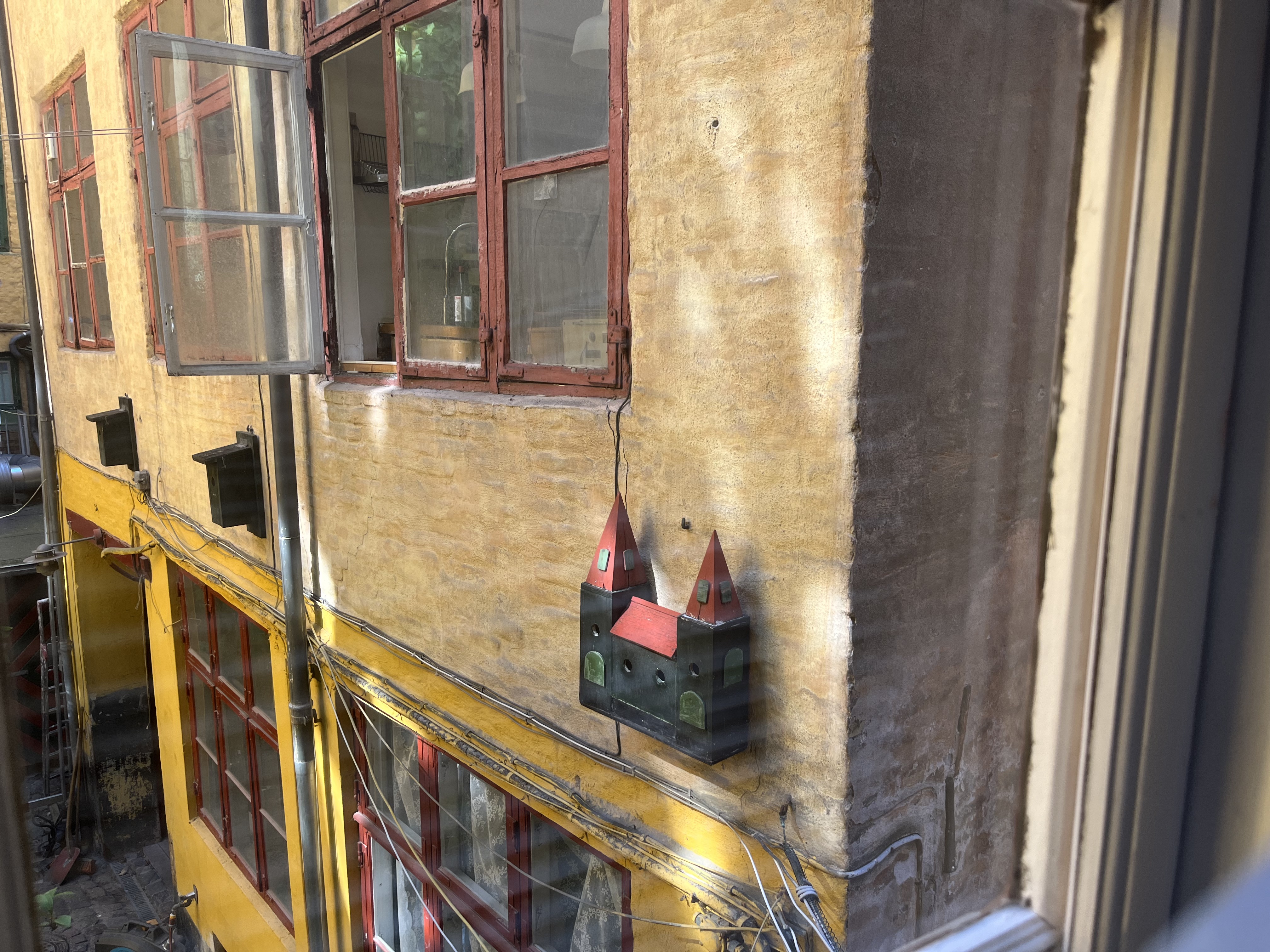We’ve been lucky the past few times we have been to Copenhagen to stay in a little apartment tucked away on the historic street of Studiestrade, right in the city centre. The building the apartment is housed in was built in 1795, and survived the bombardment by the British Royal Navy in 1807. The bright yellow building is easy to spot, but the gateway to the courtyard, is well hidden, nestling into the wall. There is even a little neighbourhood swapping library outside (see featured image at the top of the post).