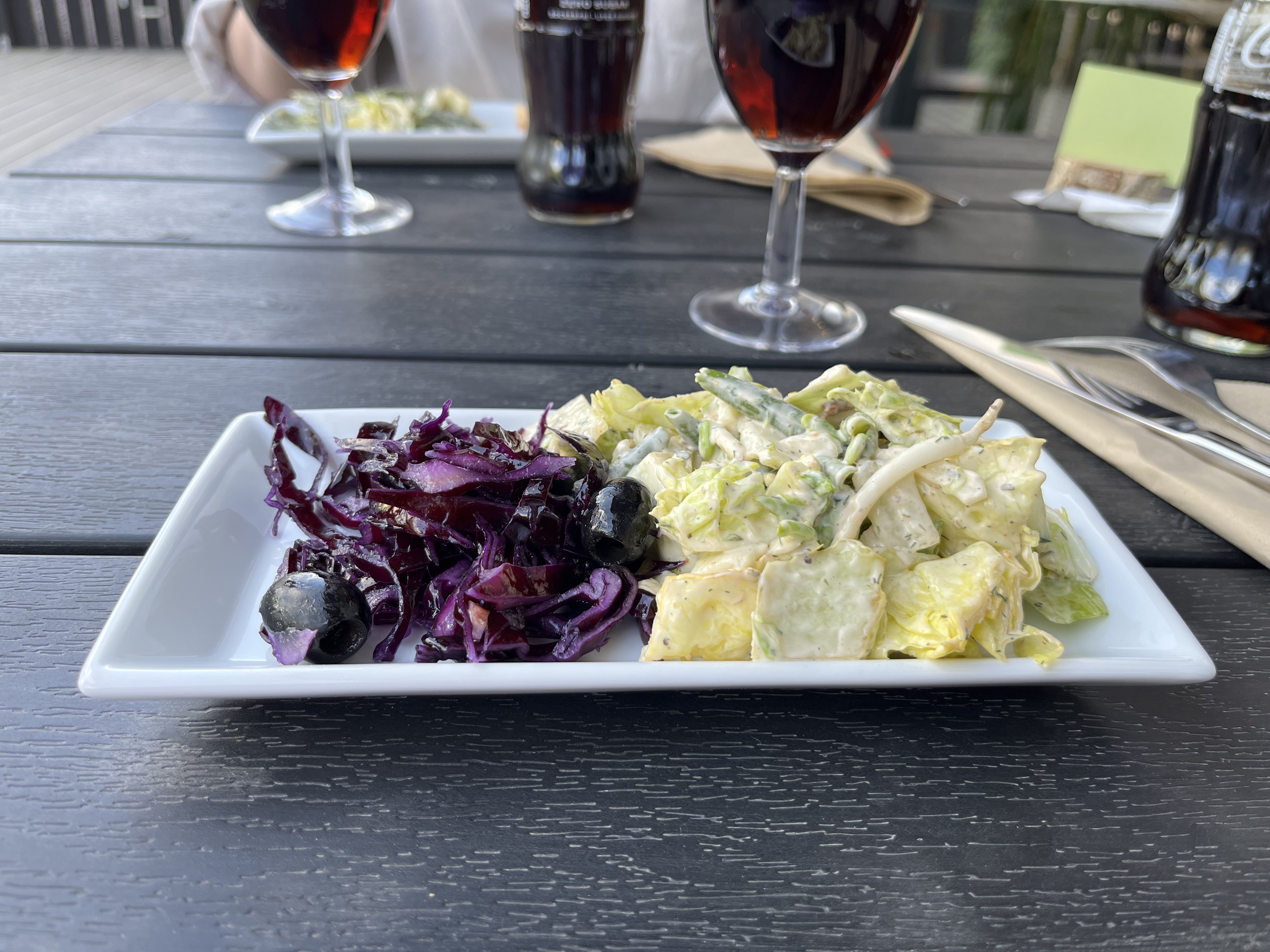 Our final stop was Pukeberg, which has been in operation as a glass factory for over 150 years. We stopped there for lunch, enjoying some good food in the summer sun. If you are travelling in Sweden, look out for lunch offers in local restaurants. These are great value and usually include a self-service salad, bread, a hot dish, and a coffee. This was particularly good with a choice of three excellent salads and a hot dish of pork with potatoes and a mushroom sauce. There were little vanilla cookies too to have with our coffee.