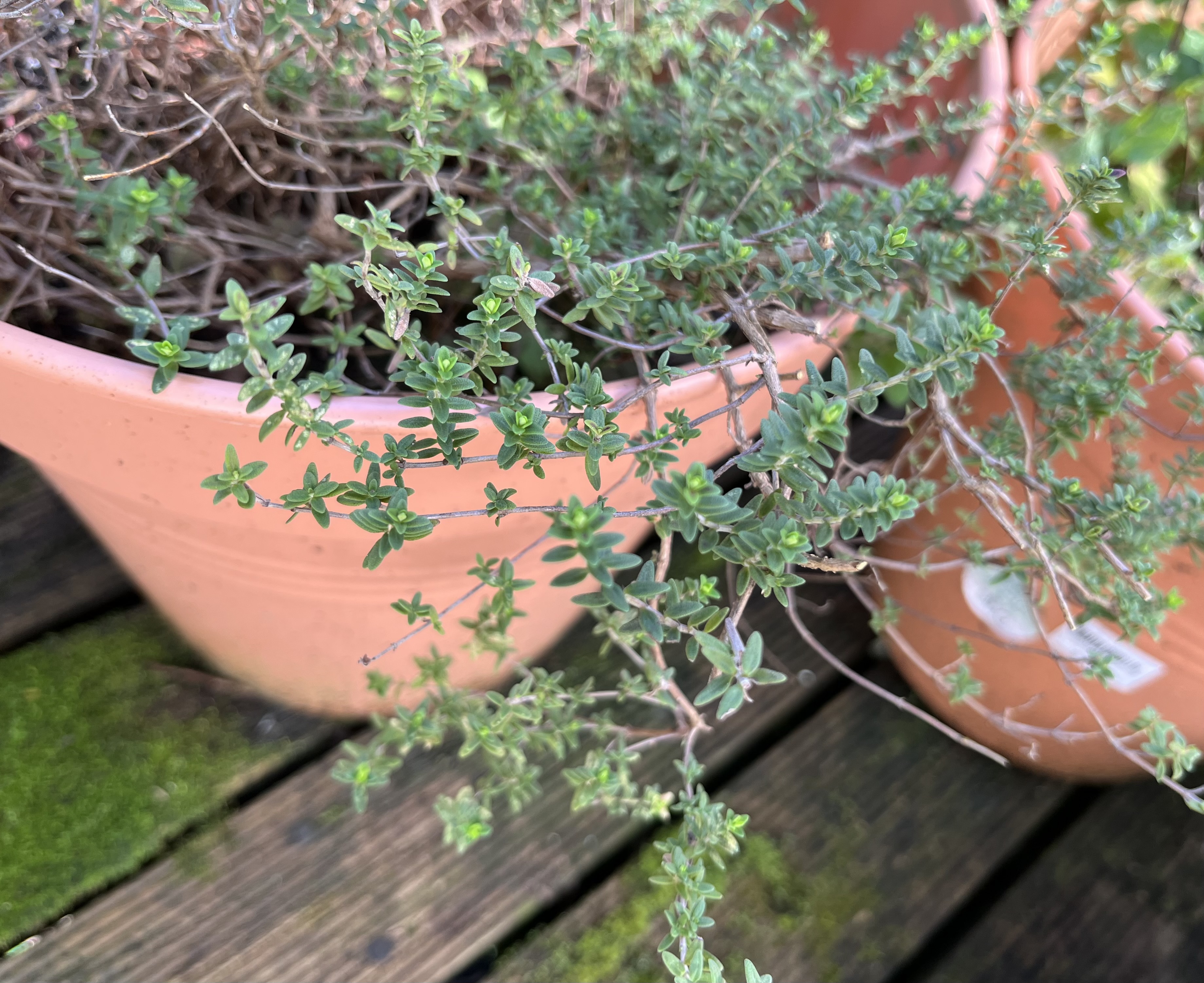 So the rosemary plants and thyme will come with us as I said. The thyme in particular is cut and used a lot. I’ll keep a parsley going too, and sage. Let’s see!