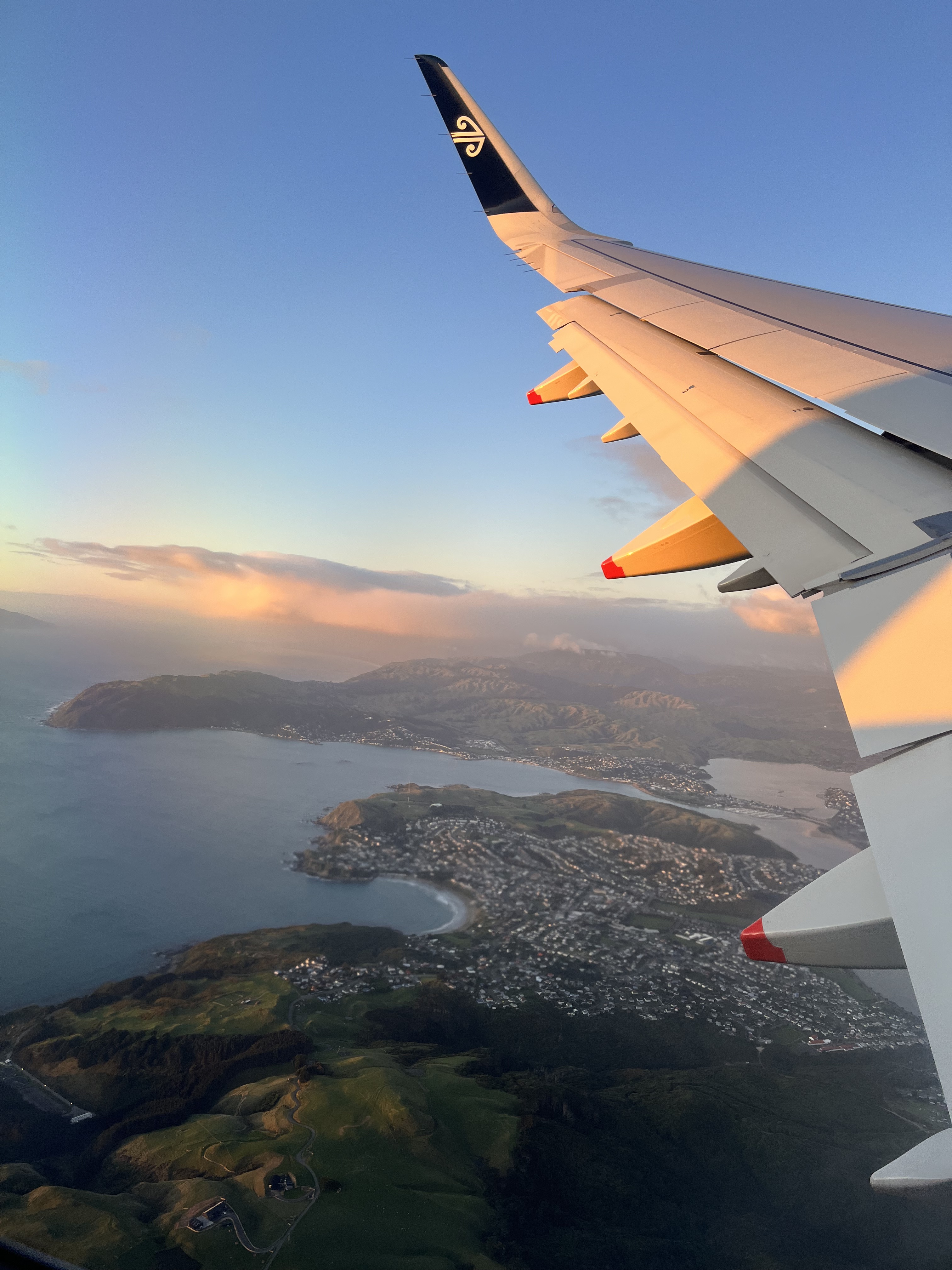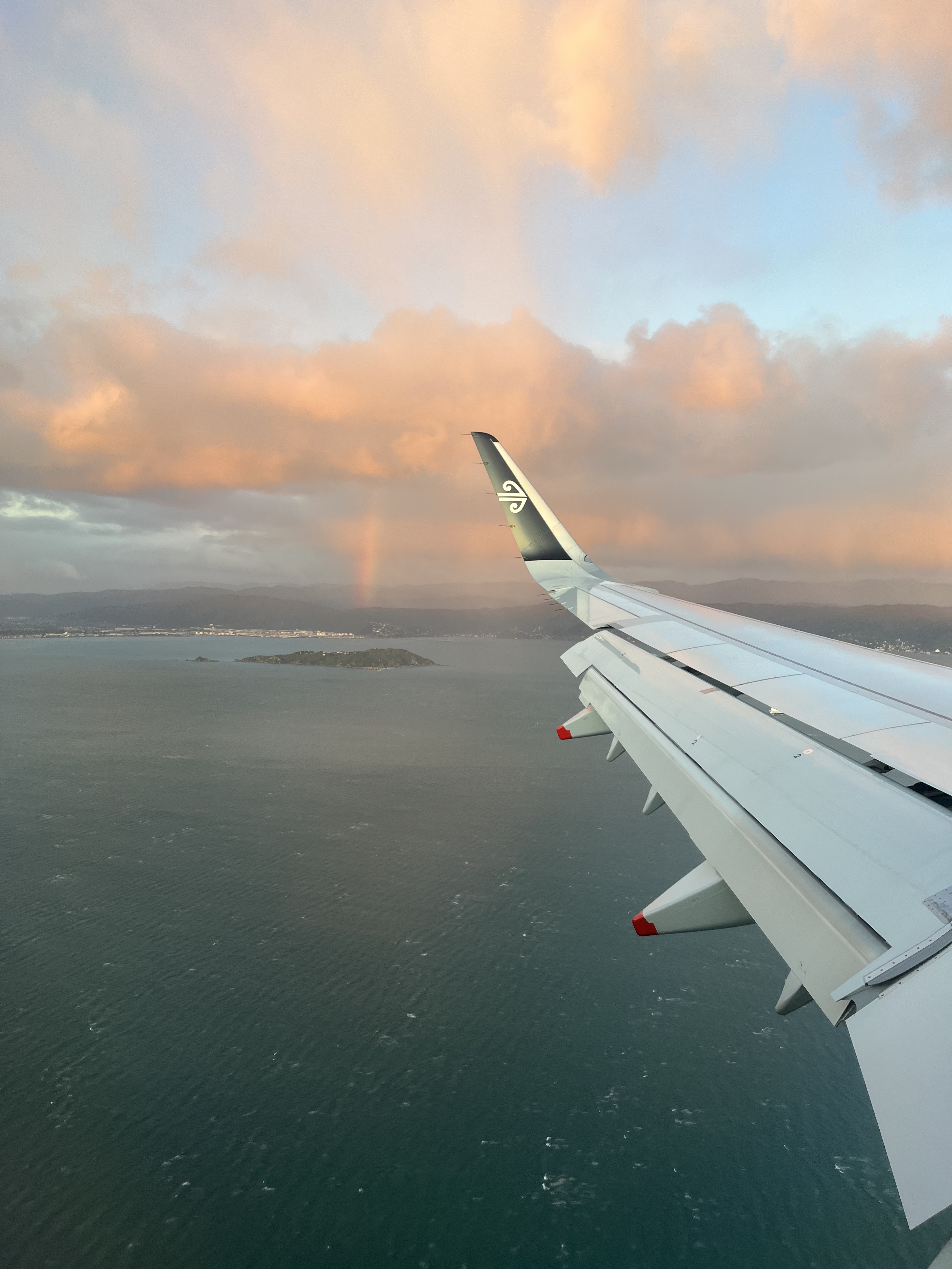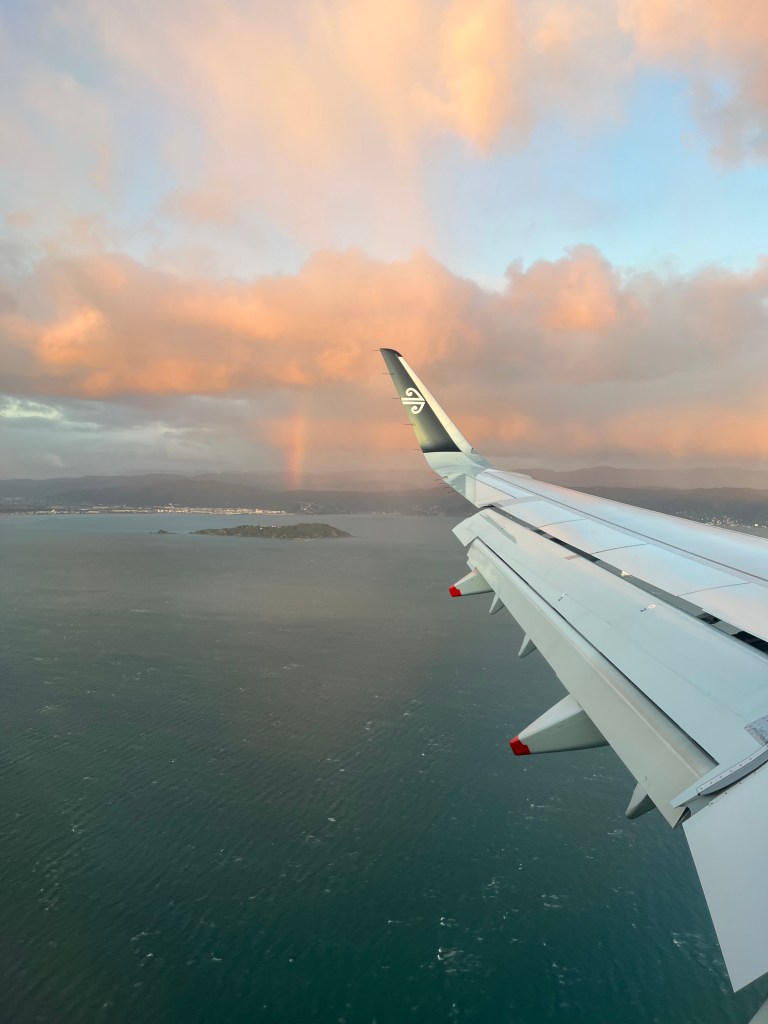 Anyway, this week I was up in Auckland for work, and having a window seat, I was able to capture some of the amazing skies on the trip home on Wednesday. If you look very carefully at the picture on the right below, you can just see a rainbow.