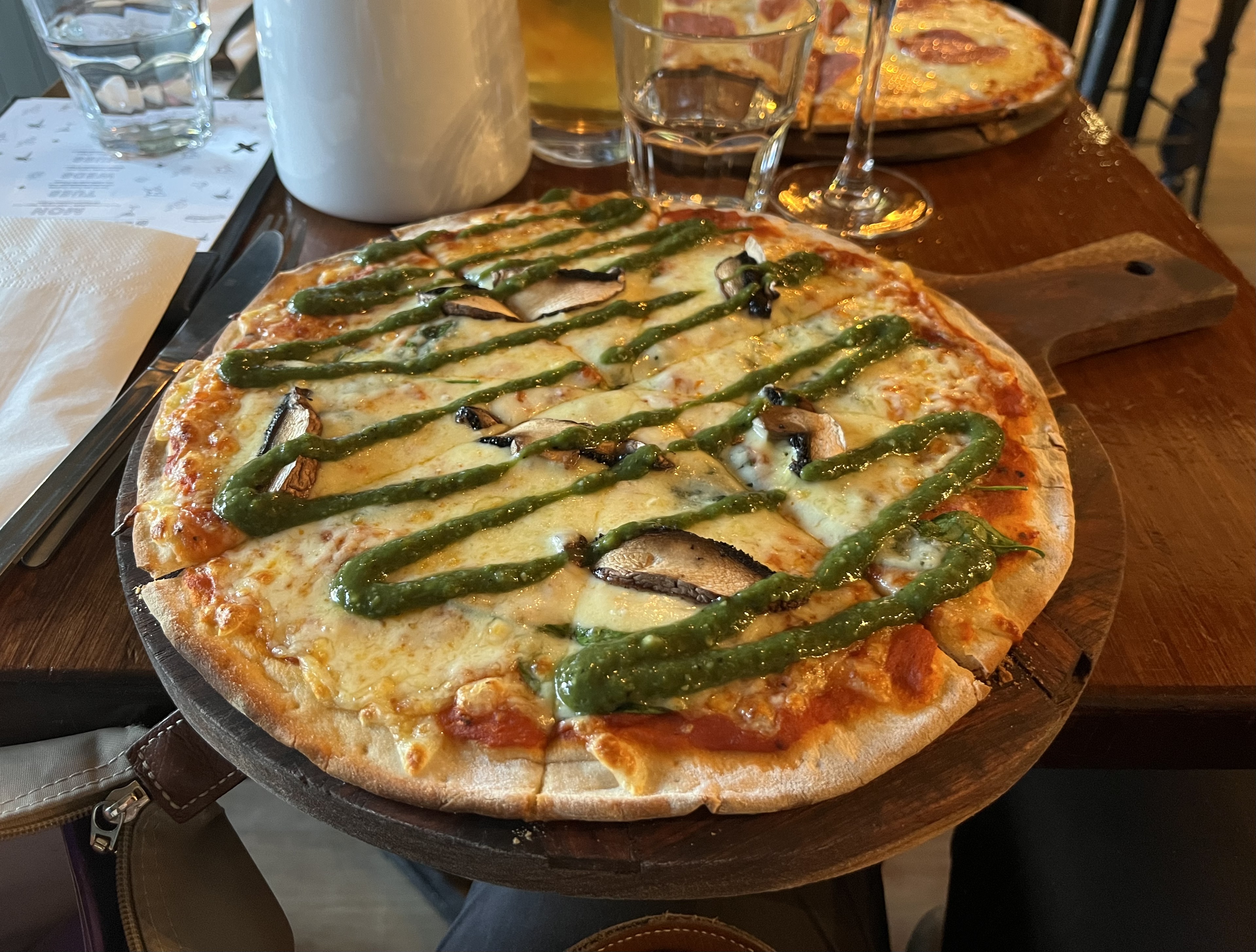 We grabbed surprisingly good pizza on Sunday at Mishmosh before the cinema, with me opting for one with mushrooms and pesto and lots of lovely gloopy mozzarella and Karl the pepperoni.