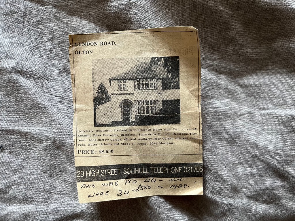 Packing can raise questions, amusing issues and dilemmas. For example, I found so many greetings cards – birthday, Christmas, no message – that I have now got a box dedicated to such things. As I said to a friend, I could almost start a shop! There were also what I will grandly call the family papers (something else I haven’t written about in the blog), finding tucked away my great grandfather’s membership of the National Liberal Club (which you can read all about here), and a snippet from a newspaper (probably the 1970s) sent by my mother’s cousin about a house for sale that cost £550 in 1928 (and probably £500,000 now).