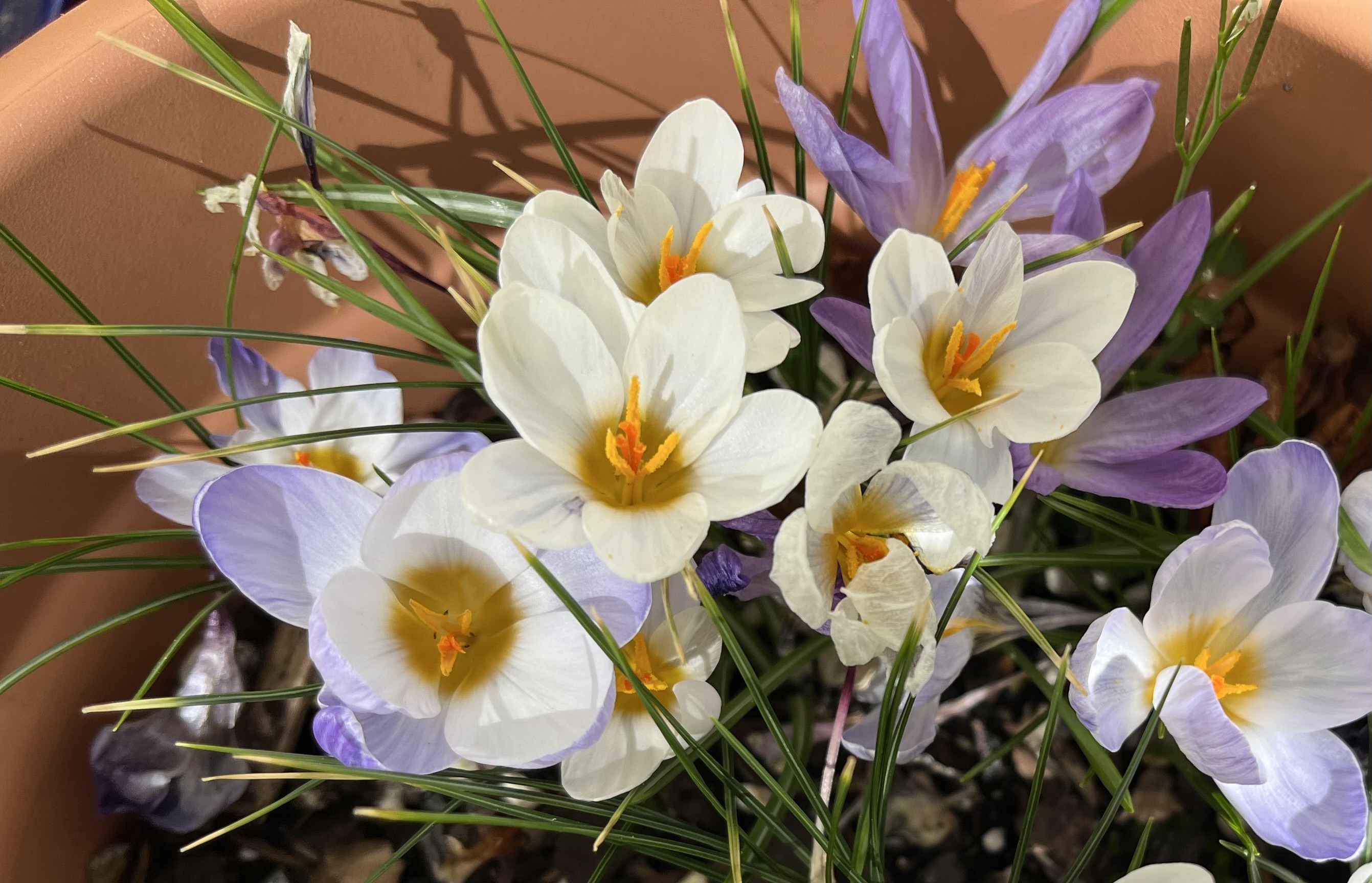 So we are slowly settling in, unpacking boxes and gradually finding things. A few plants from the old place have been transported down to the new place and now need to be given new homes. The crocus are in full bloom as you can see from the featured image at the top of the post, so lovely to see and so good to have them brighten up the balcony. Anyway, thanks to Jim at Garden Ruminations, for hosting Six on Saturday, whose knowledge of all things plants and gardening makes him an ideal host and move on to what can be see at the moment outside.