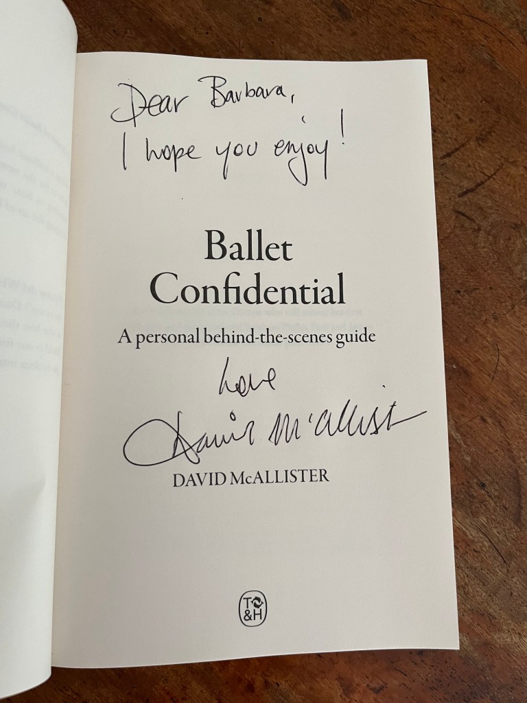 The book is designed to demystify ballet, and, as the blurb on the back says it details ‘everything you have ever wanted to know about ballet but were too afraid to ask’, and is an irreverent look at the life of a ballet company and its dancers. The conversation was a real delight, and the hour passed too quickly. I of course had to buy a copy and get it signed, and now look forward to reading it.