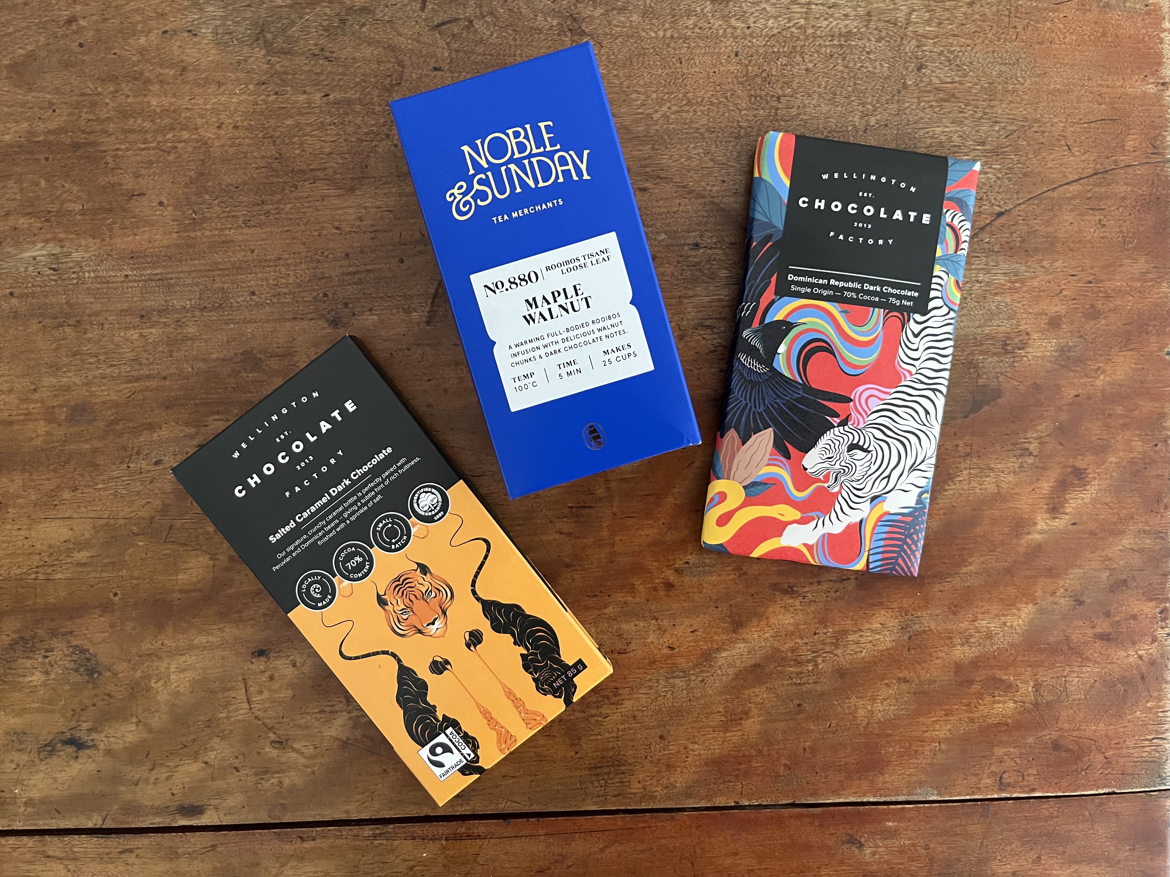 While at Shelley Bay Baker, I enjoyed an egg and rocket sandwich on a really nice rye bread for lunch, and popped into the Wellington Chocolate Factory for a couple of bars of their chocolate (slated caramel dark and a 70% cocoa from the Dominican Republic) which is always nice to have on hand. During the week I also picked up some more of Noble & Sunday’s comforting and delicious maple walnut rooibos tea. I also had a craving for two things this week – fresh tomatoes (out of season and expensive) and a pain au raisin. Well, I at least satisfied the latter, with a surprisingly good frozen one popped in the oven on Sunday morning for a breakfast in bed treat.