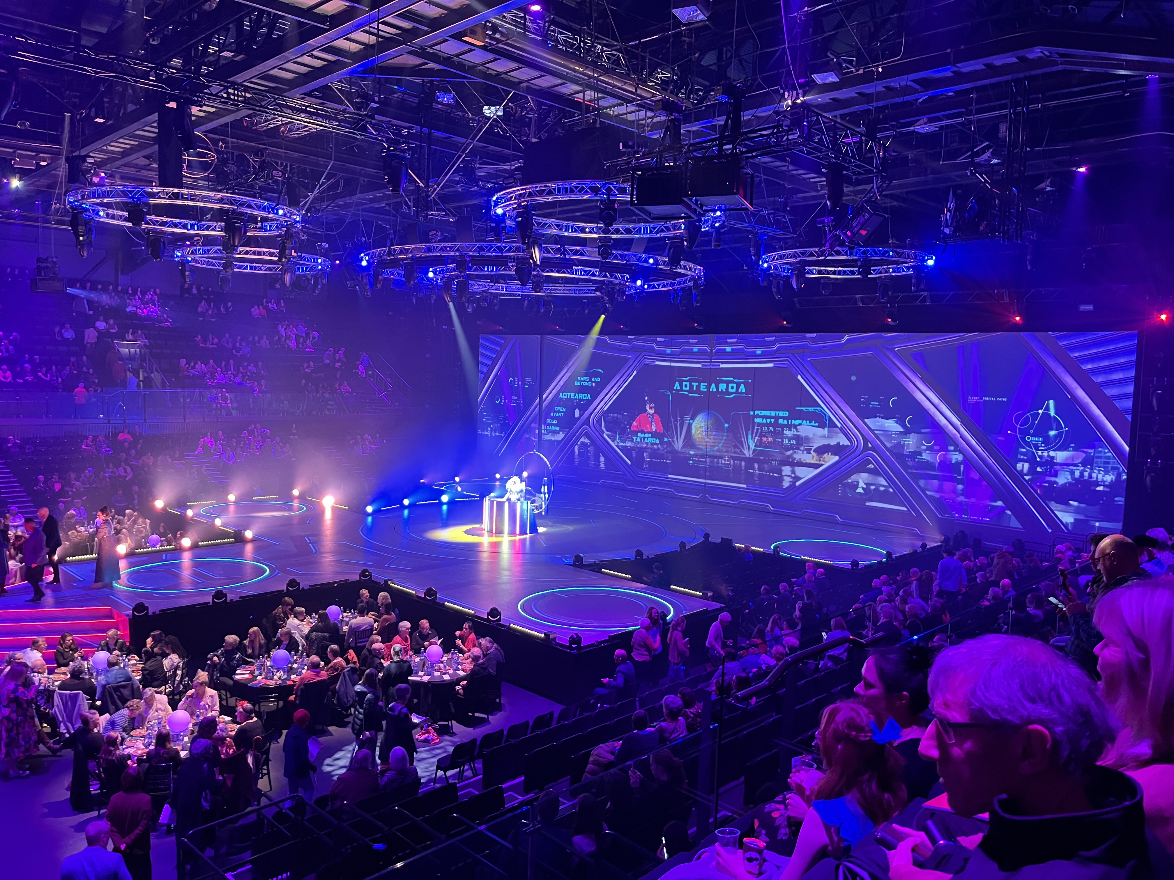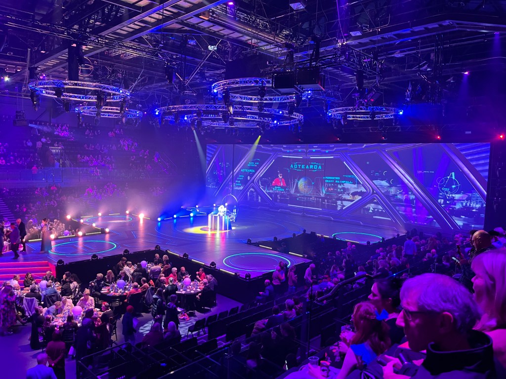 Below you can see the stage at the start of the evening as we took our seats. I personally thought this year’s show fantastic with dancers, music and amazing aerialists (one even shot a bow and arrow, upside down, with her feet). You can find a list and pictures of the winners here. If you are ever in Wellington at this time of year I can highy recommend this theatrical spectacular.