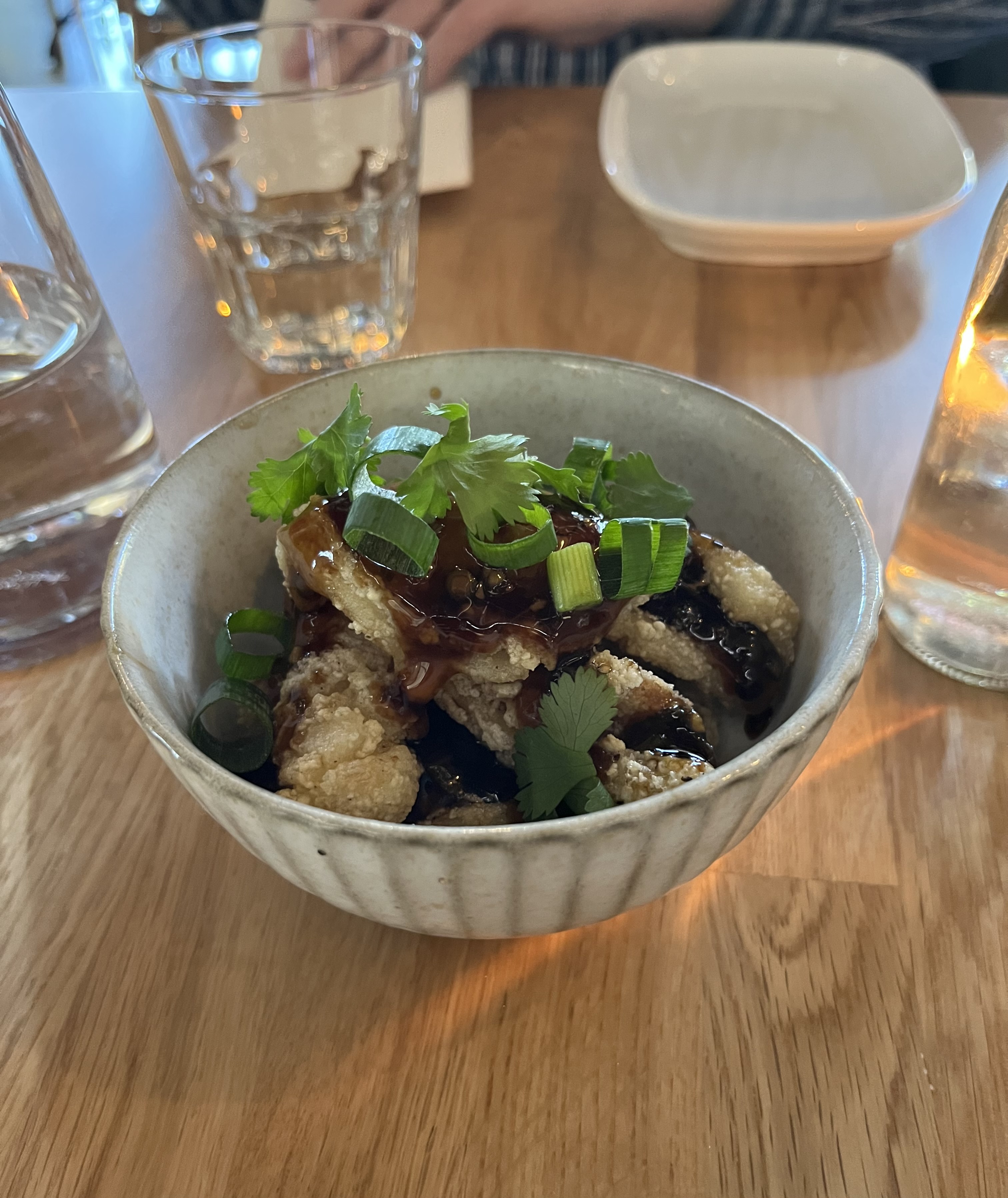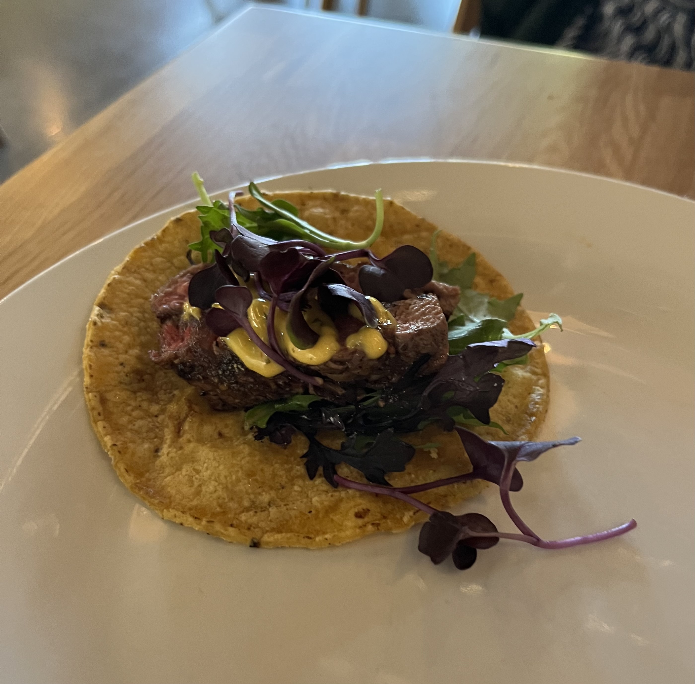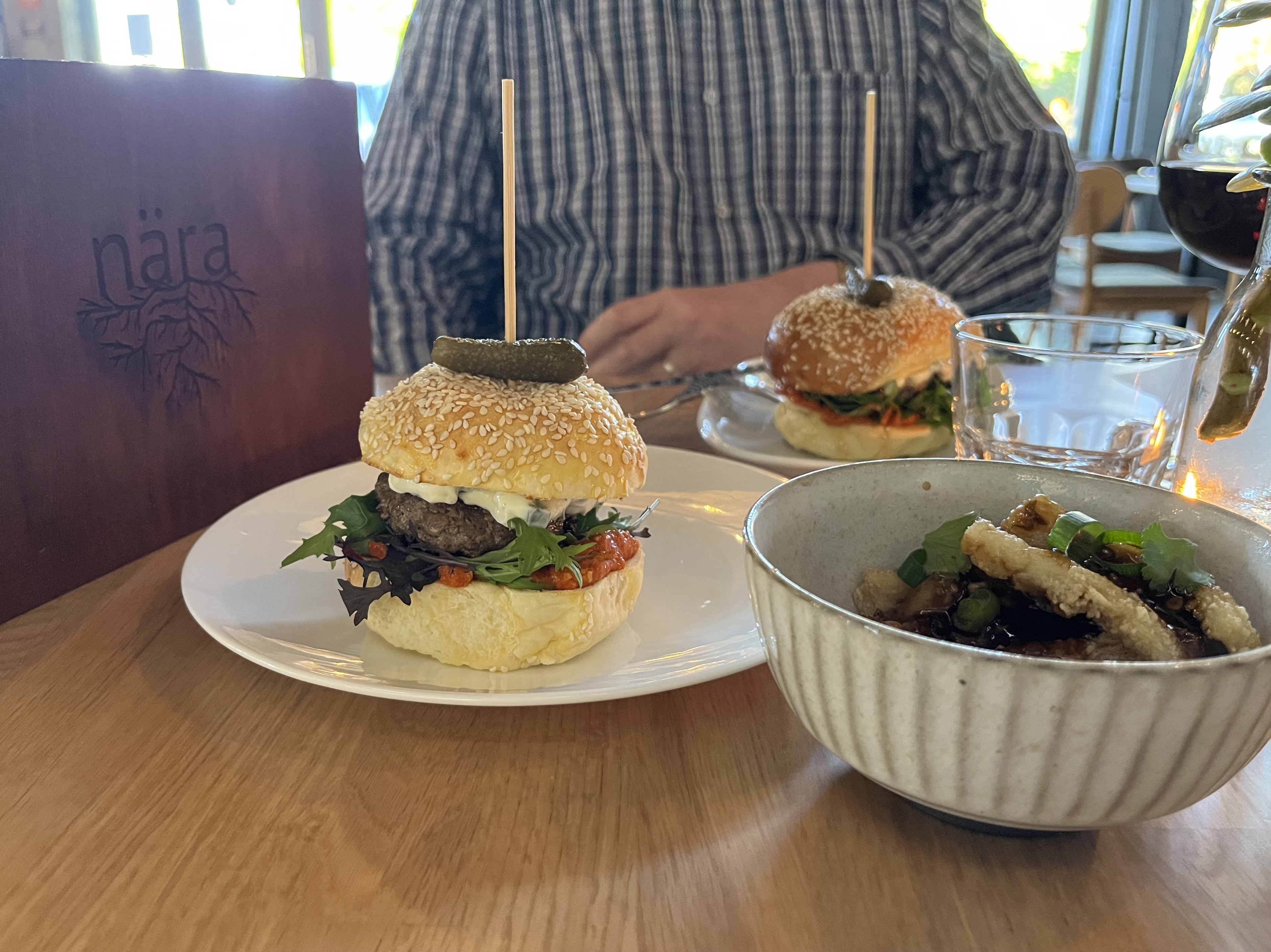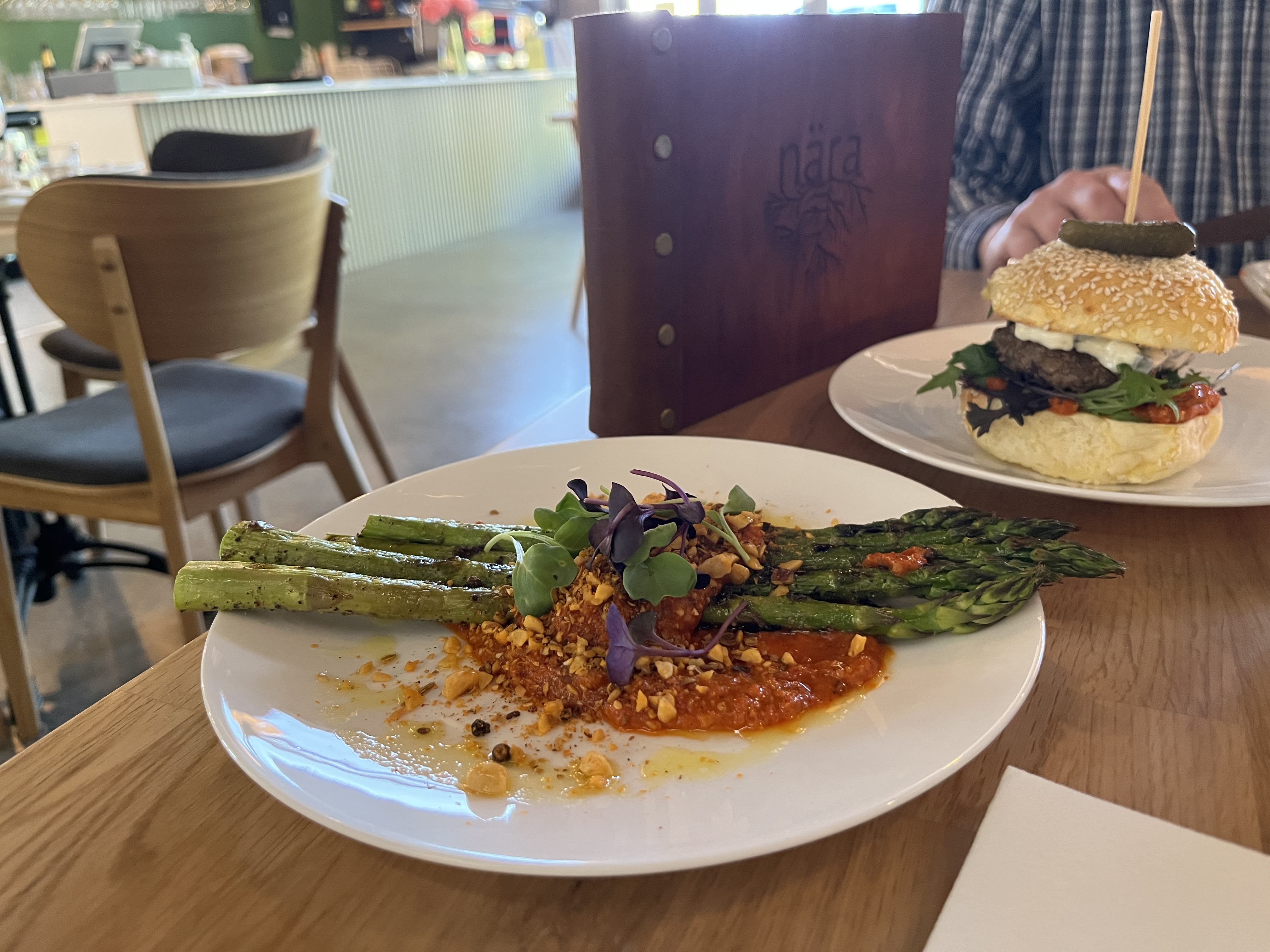 We had dinner at the newly opened Nära, situated on Memorial Square. The evening menu is a tapas style one, with just a few well chosen dishes from which to select. We ordered the chargrilled asparagus with romesco sauce, dukkah and yuzu oil, Scotch filet tacos with chimichurri mayonnaise, some absolutely amazing salt and pepper calamari with Thai green peppercorn and ginger sauce (so tender and full of flavour) and the spiced lamb sliders with tzatziki, rocket and a perfect little pickle. The food was excellent, and we must try lunch there on our next visit.