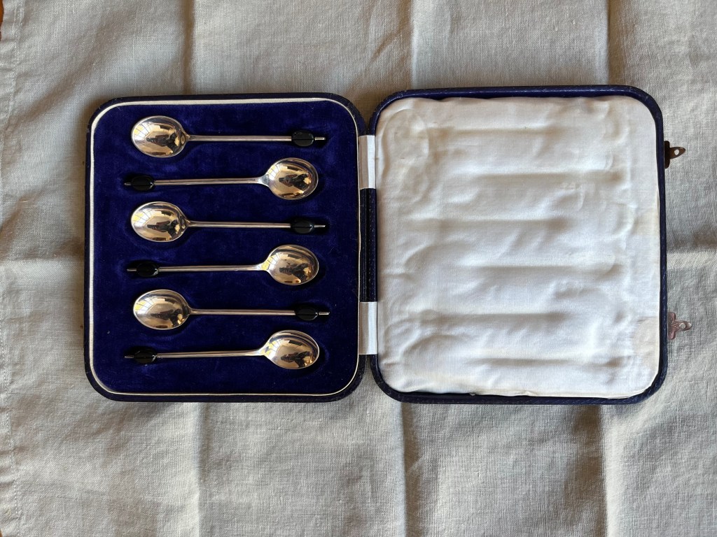 I spotted these gorgeous little coffee spoons which I believe are from the 1930s.The state of the box indicates they have probably hardly been used, and whether I do or not remains to be seen, but I think they are such fun with the coffee bean end to each handle