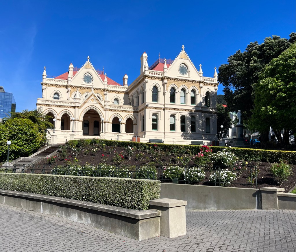 Saturday was a gloriously sunny day. These are the buildings I spotted on my walk to Pilates in the morning. The picture at the top left below shows the Parliamentary Library, the oldest of parliament’s buildings. Finished in 1899, it stands on the former site of Wellington’s Provincial Government Building and has a small rose garden at the front. The building at the bottom right is the MLC building, a great late Art Deco building from 1939. The building was the head office of the Australian Mutual Life and Citizen’s Assurance Company, one of New Zealand’s largest insurance and investment companies in the twentieth century.