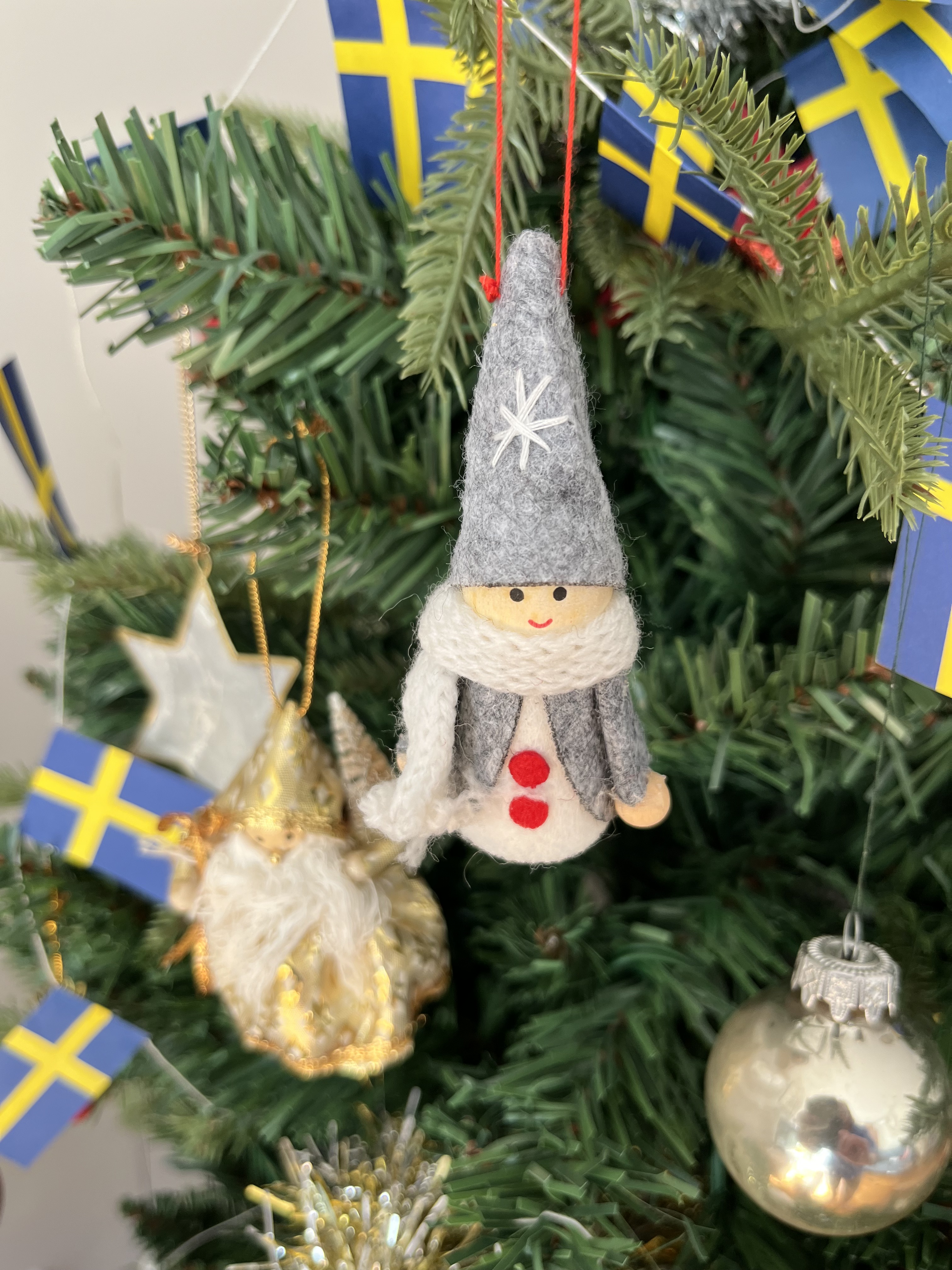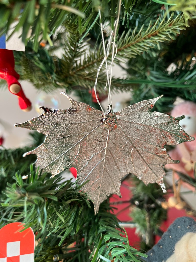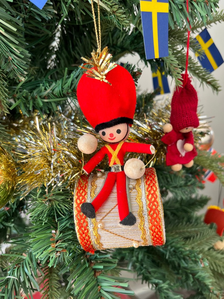 If you have been following the blog for a while, you may recognise some of the decorations on our little tree, including the little French drummer boy, given to me when I was 11 years old. The silver leaf was a gift from my niece Helen.