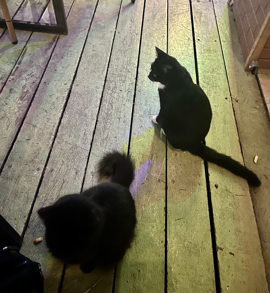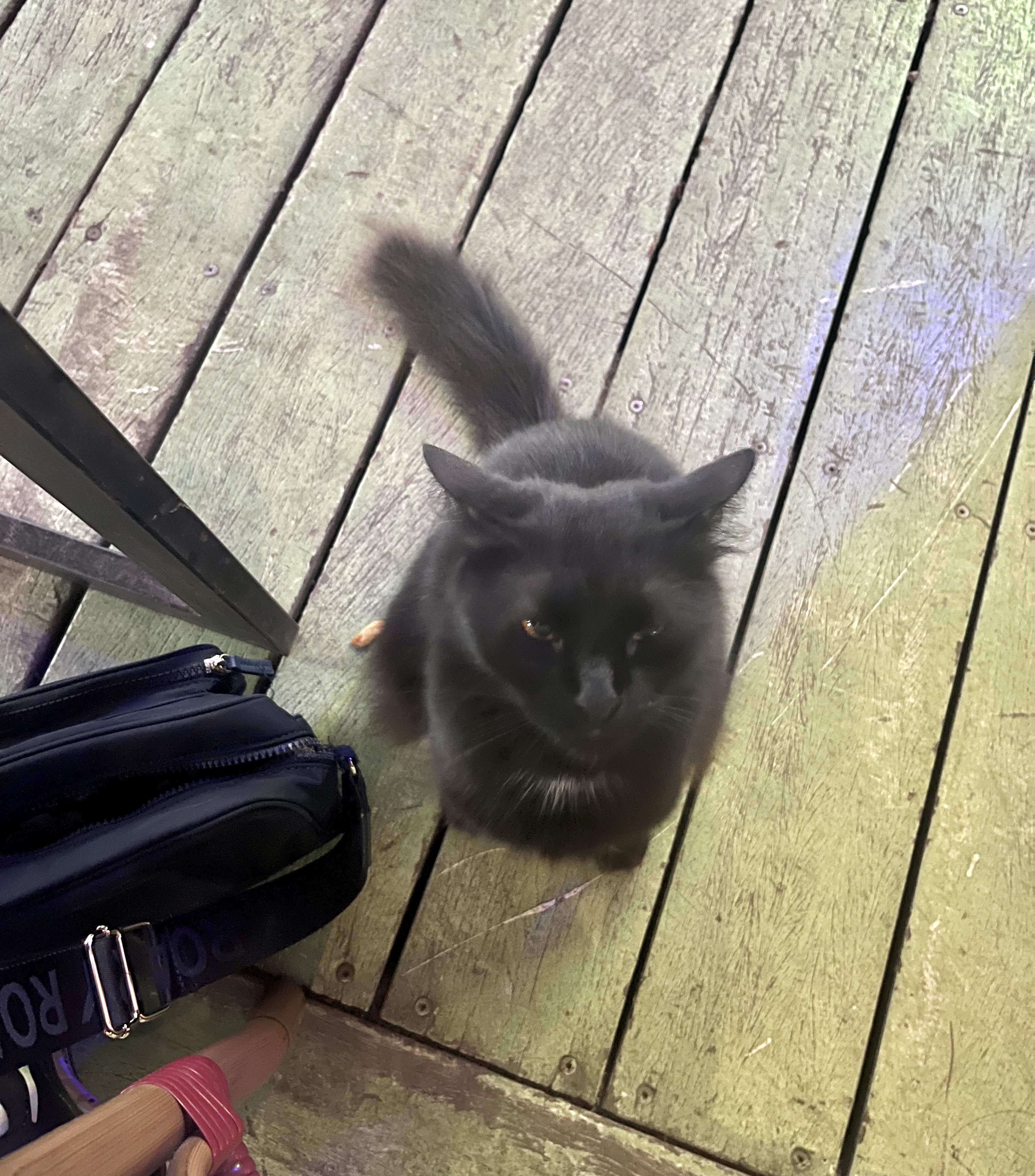 While I was eating my favourite prawn dish, a little black cat with a little white ‘bow tie’ appeared, miaowing loudly and clearly expecting a little bit of seafood. His big eyes looked at me, he miaowed again, and so I succumbed and gave him a small bite. His friend appeared, though he was less vocal and clearly following Sir Bow Tie (as I called cat number one). After a couple of bits of prawn, and realising I had finished, he lay down for a quick nap before spotting someone else to look at cutely and demand a bit of prawn. I spoke to the waiter about him and he said that cat could smell prawns from kilometres away! They both looked well cared for and clearly liked to visit the outdoor restaurants along Baie des Citrons.