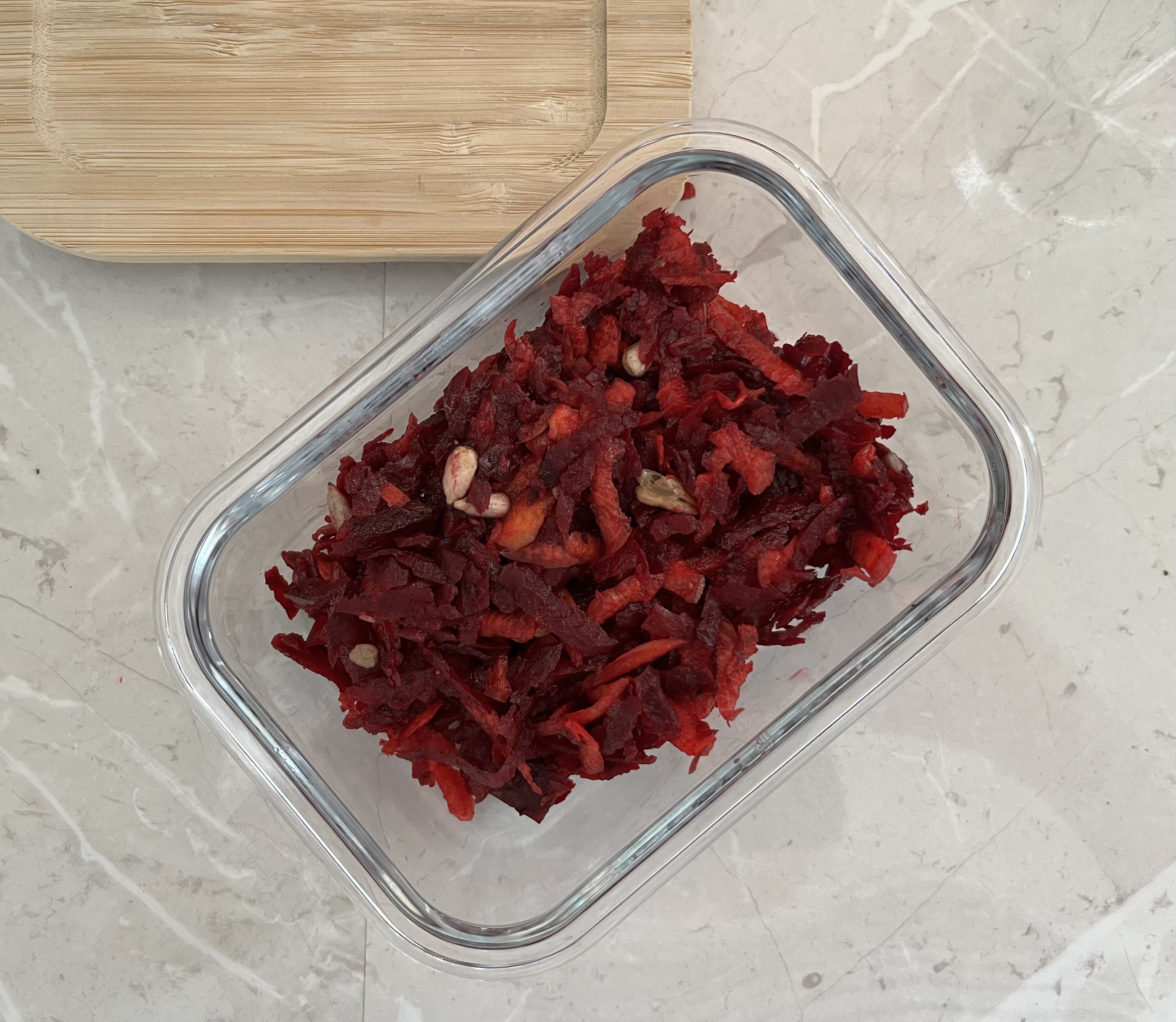 I also made a beetroot and carrot salad with lots of seasoning and a dressing from lime scented olive oil. As you might be aware, I don’t like beetroot. so this was a real trial of whether I could eat raw beetroot, which I read was more appealing to those of us who don’t like this root vegetable. Well, it seemed quite edible, so I now have that as the basis for my lunches for the next two days. I will report back!