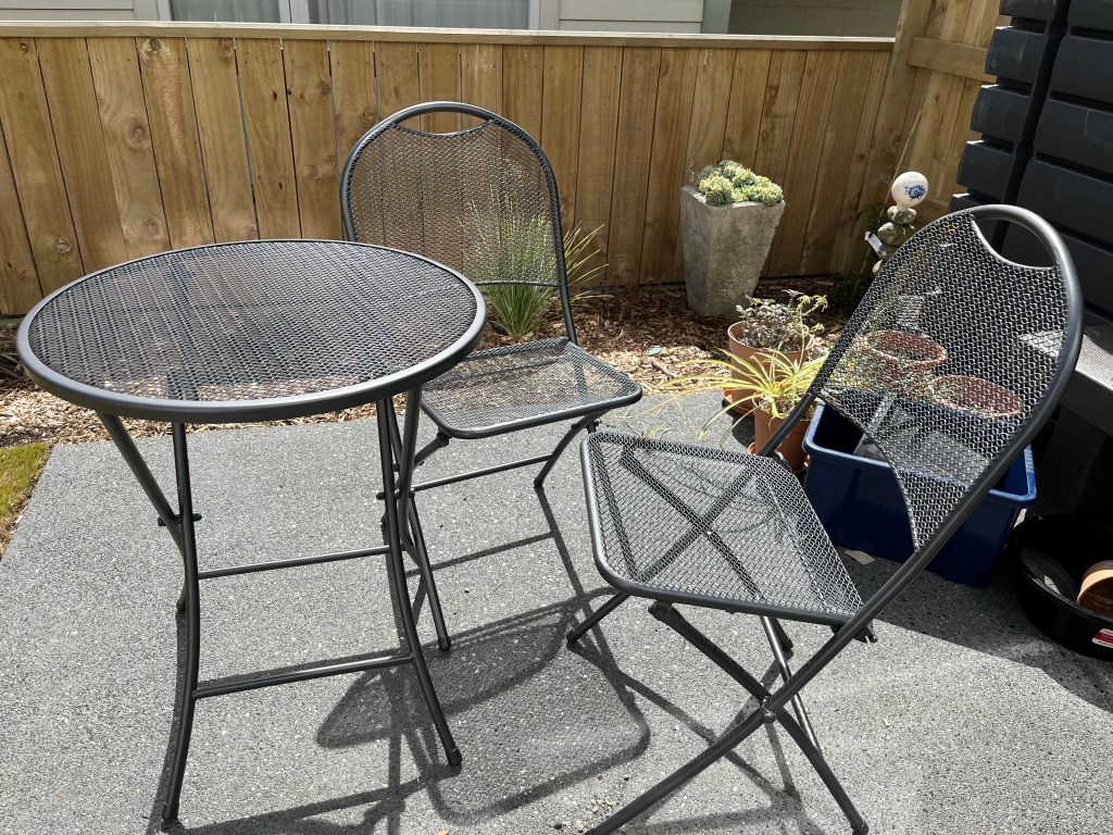 What a nice little yard—our word for garden in the United States. For us, gardens are where plants grow. I have never seen a drying rack like that. What a great idea! And how lovely to have a seating area outside.